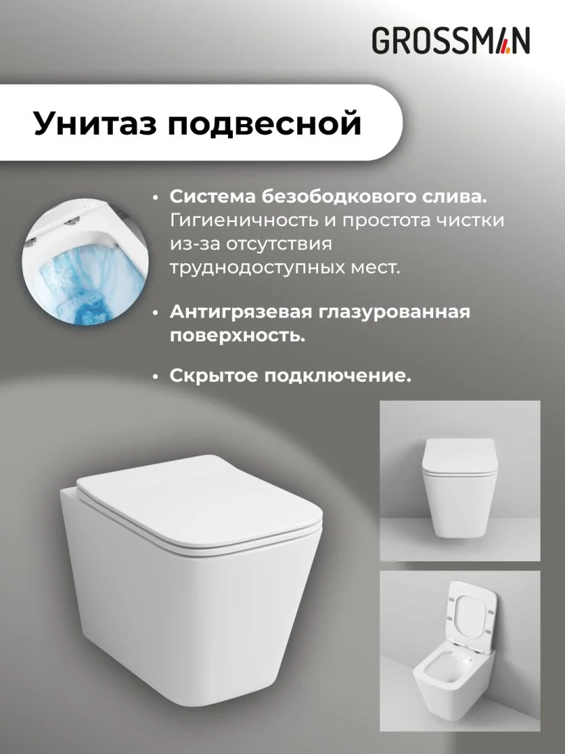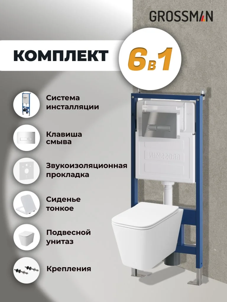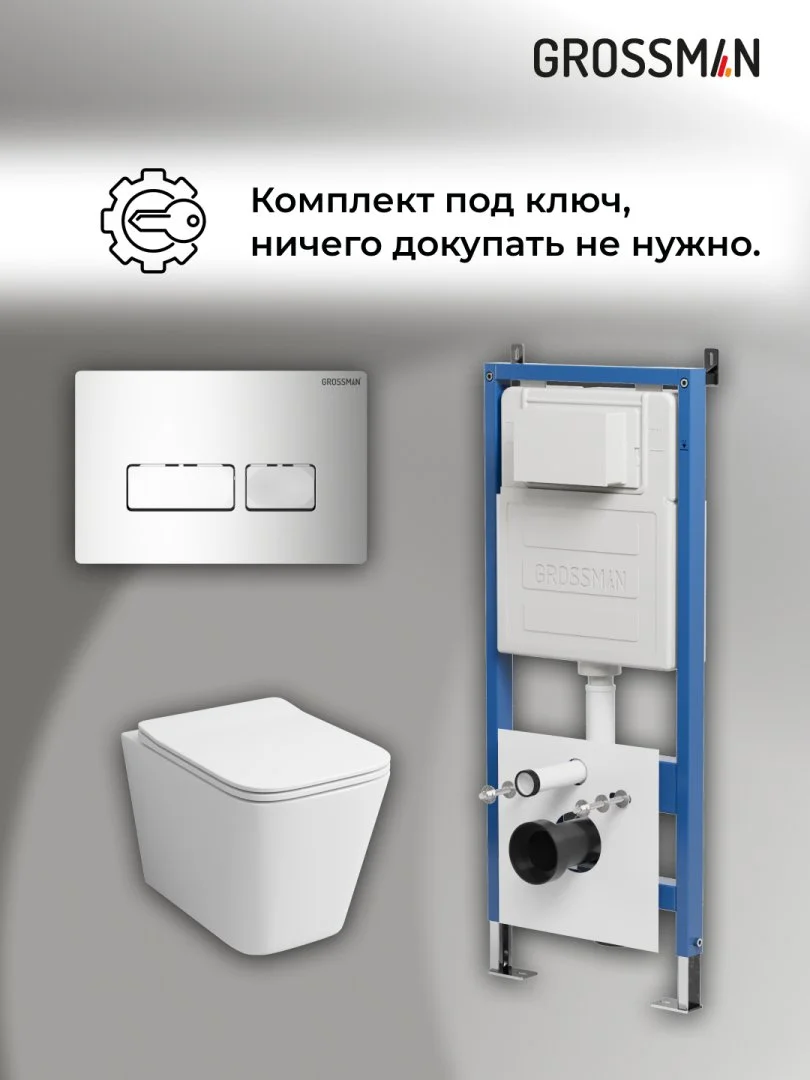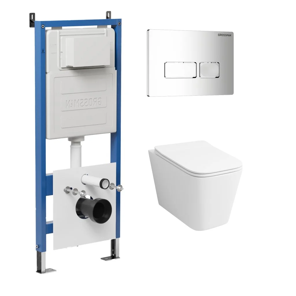 Комплект инсталляции GROSSMAN 900.K31.01.000 с клавишей смыва 700.K31.03.100.100 хром и унитазом GROSSMAN GR-4441S арт.97.4441S.03.100