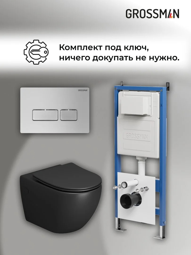 Комплект инсталляции GROSSMAN 900.K31.01.000 с клавишей смыва 700.K31.03.110.110 хром матовый и унитазом GROSSMAN GR-4411BMS арт.97.4411BMS.03.110