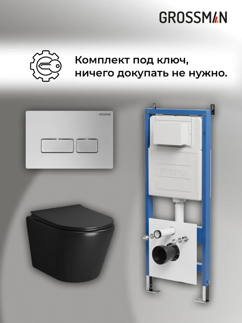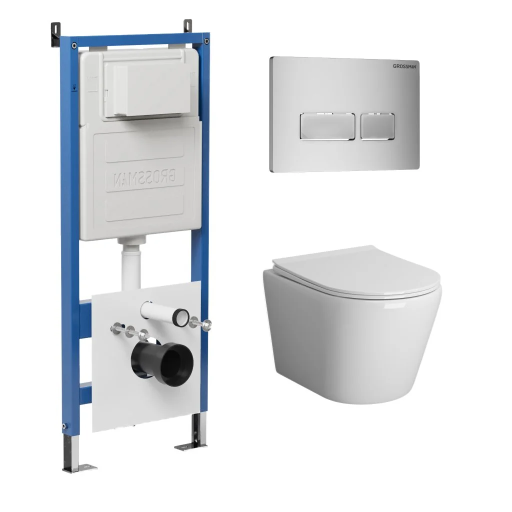 Комплект инсталляции GROSSMAN 900.K31.01.000 с клавишей смыва 700.K31.03.110.110 хром матовый и унитазом GROSSMAN GR-4478BMS арт.97.4478BMS.03.110