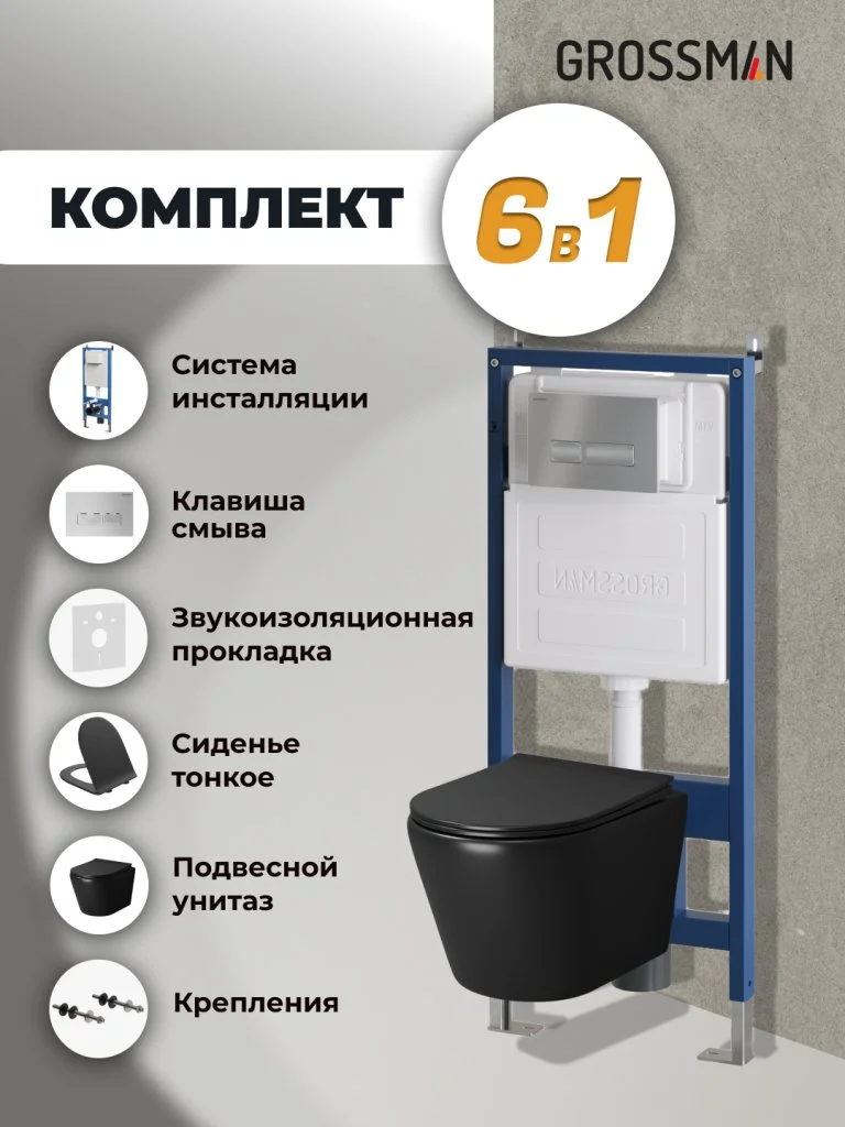 Комплект инсталляции GROSSMAN 900.K31.01.000 с клавишей смыва 700.K31.03.110.110 хром матовый и унитазом GROSSMAN GR-4478BMS арт.97.4478BMS.03.110