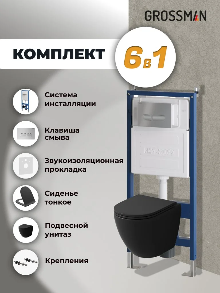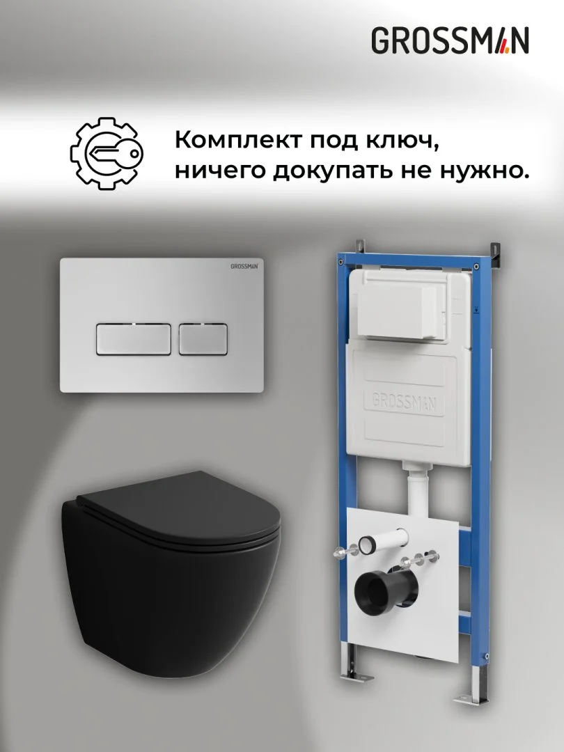 Комплект инсталляции GROSSMAN 900.K31.01.000 с клавишей смыва 700.K31.03.110.110 хром матовый и унитазом GROSSMAN GR-4455BMS арт.97.4455BMS.03.110