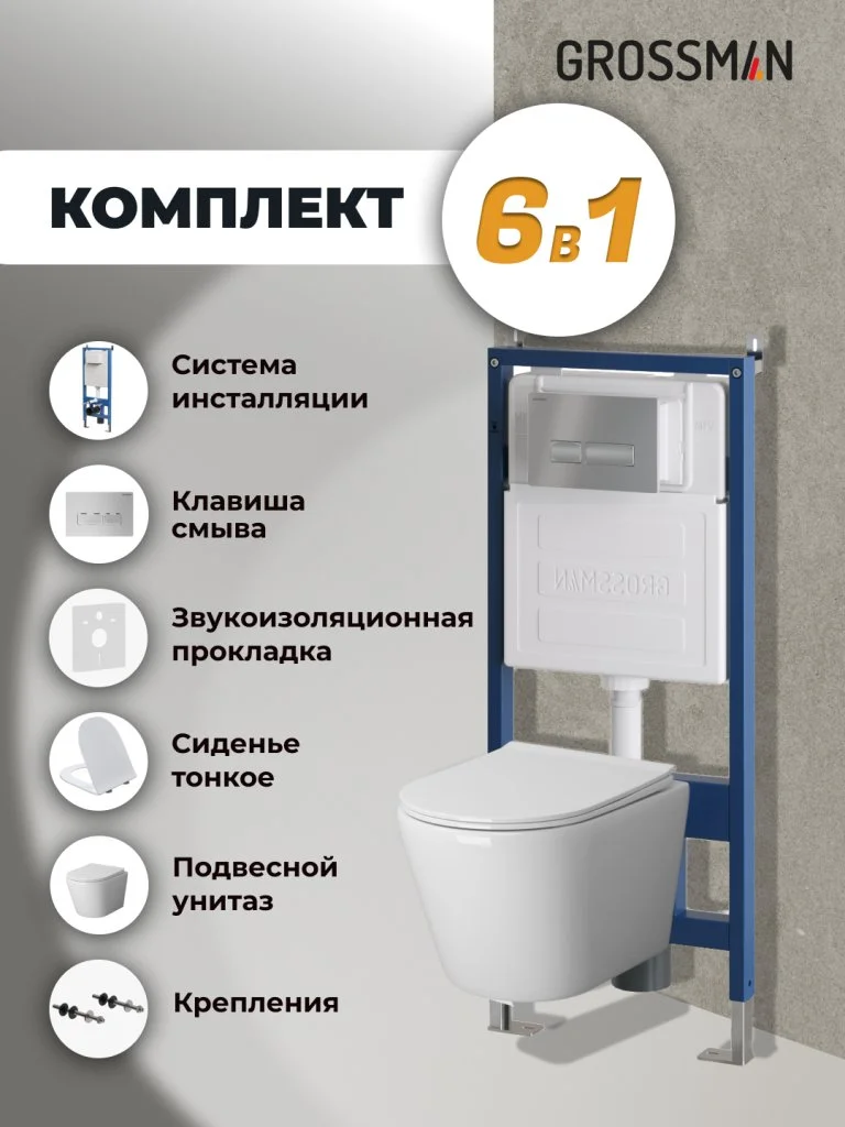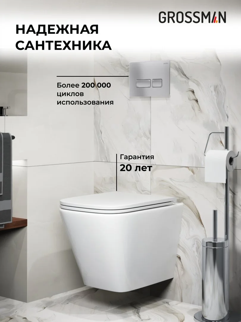 Комплект инсталляции GROSSMAN 900.K31.01.000 с клавишей смыва 700.K31.03.110.110 хром матовый и унитазом GROSSMAN GR-4479SQ арт.97.4479SQ.03.110