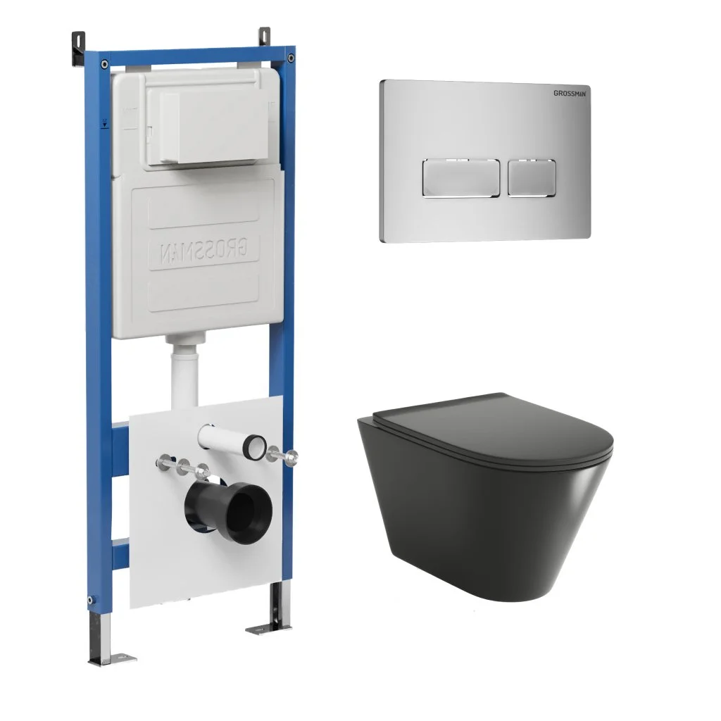 Комплект инсталляции GROSSMAN 900.K31.01.000 с клавишей смыва 700.K31.03.110.110 хром матовый и унитазом GROSSMAN GR-4477BMS арт.97.4477BMS.03.110