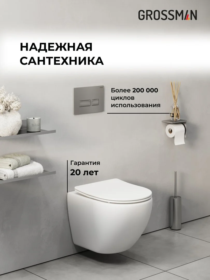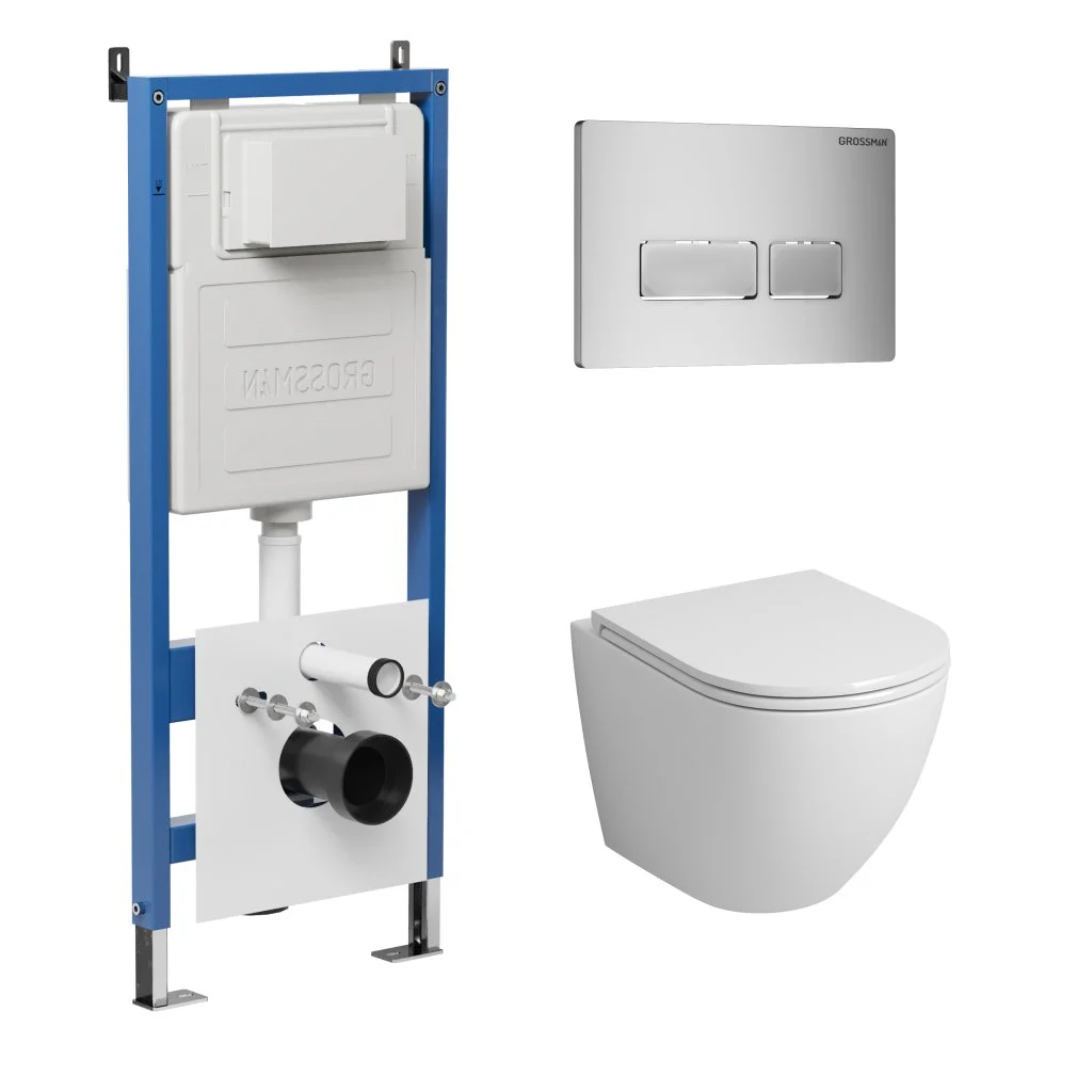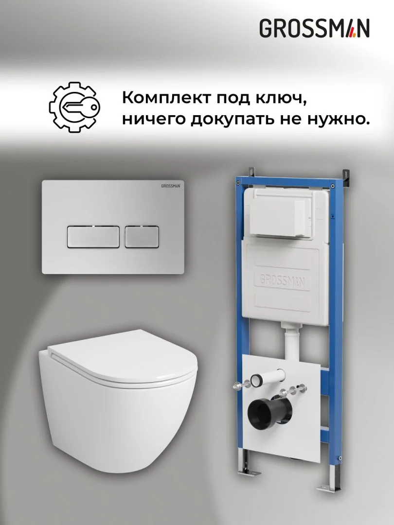 Комплект инсталляции GROSSMAN 900.K31.01.000 с клавишей смыва 700.K31.03.110.110 хром матовый и унитазом GROSSMAN GR-4455SQ арт.97.4455SQ.03.110
