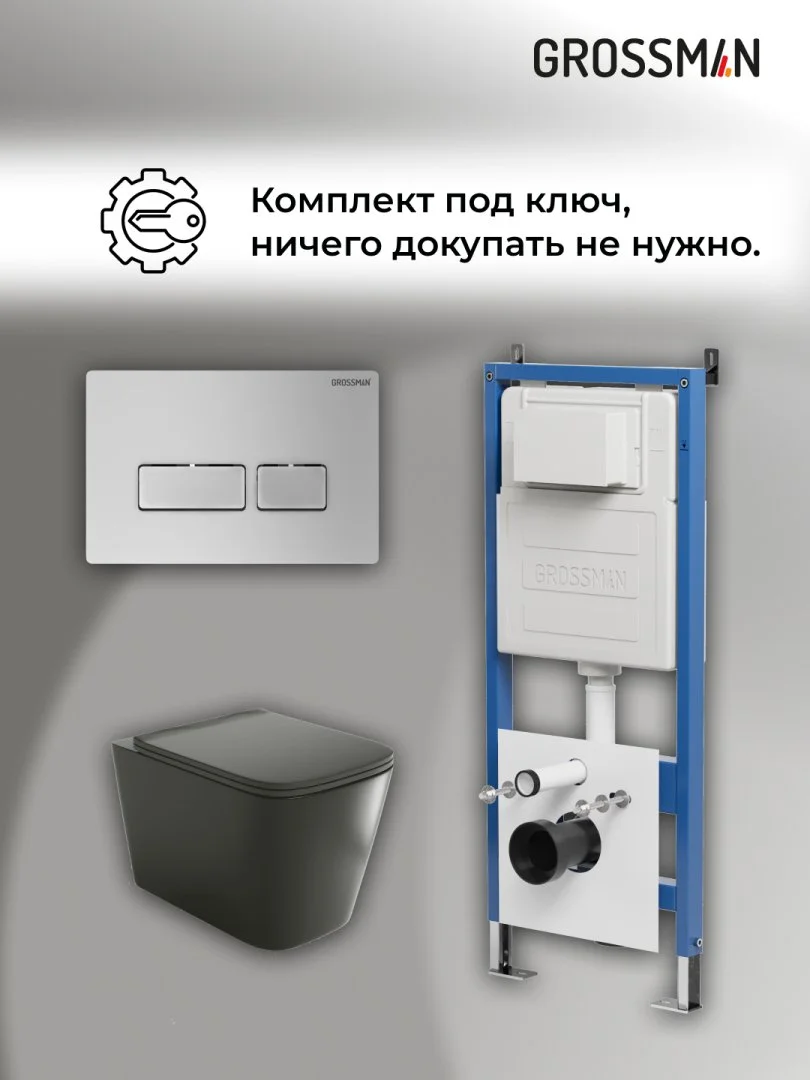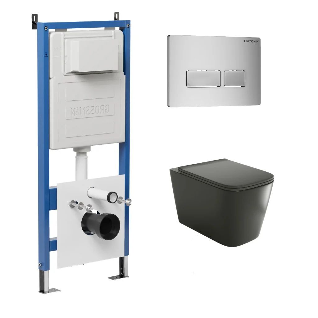 Комплект инсталляции GROSSMAN 900.K31.01.000 с клавишей смыва 700.K31.03.110.110 хром матовый и унитазом GROSSMAN GR-4441BMS арт.97.4441BMS.03.110