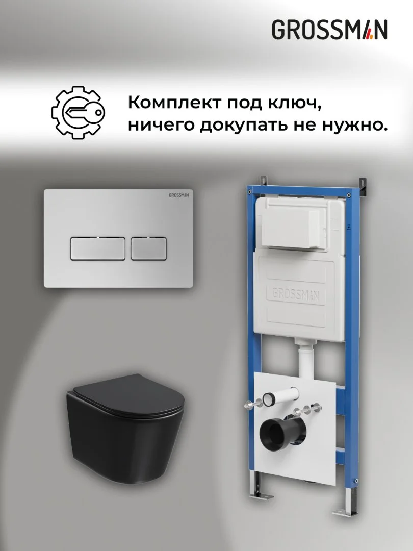 Комплект инсталляции GROSSMAN 900.K31.01.000 с клавишей смыва 700.K31.03.110.110 хром матовый и унитазом GROSSMAN GR-4477BMSQ арт.97.4477BMSQ.03.110
