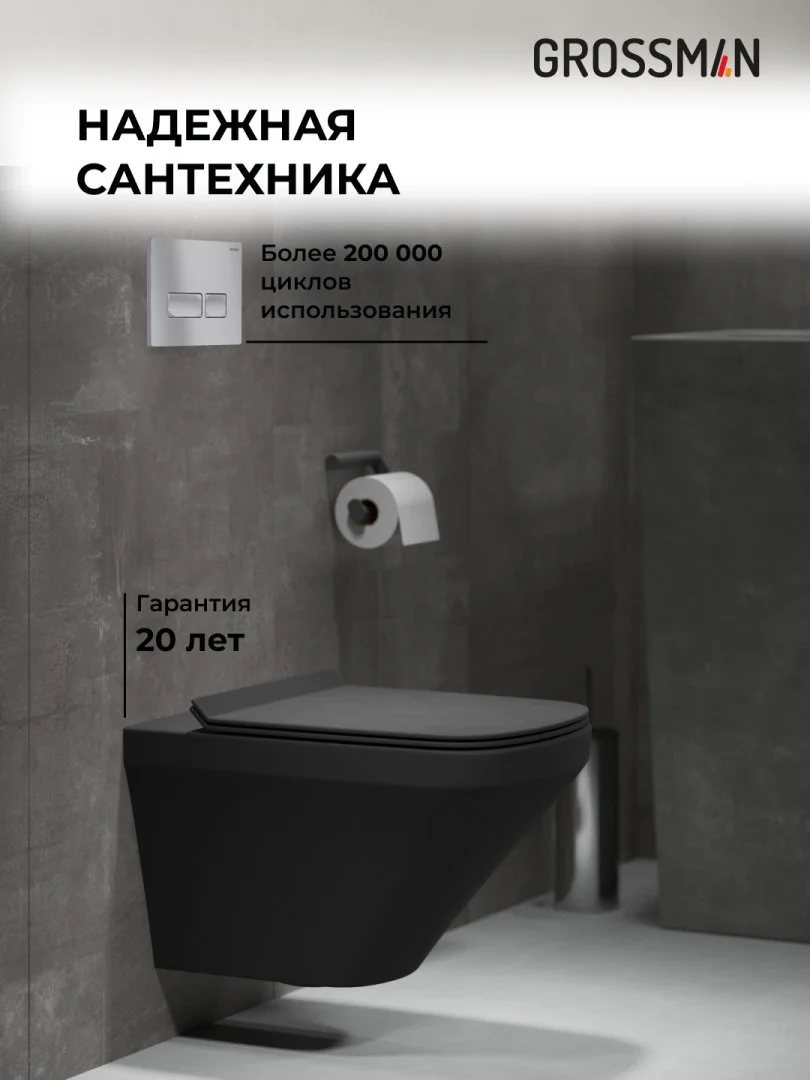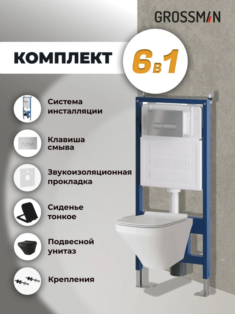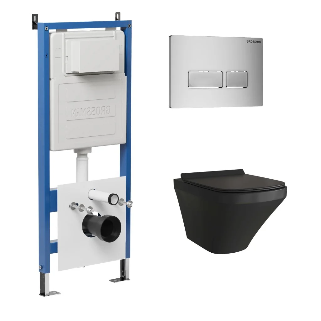 Комплект инсталляции GROSSMAN 900.K31.01.000 с клавишей смыва 700.K31.03.110.110 хром матовый и унитазом GROSSMAN GR-4440BMS арт.97.4440BMS.03.110