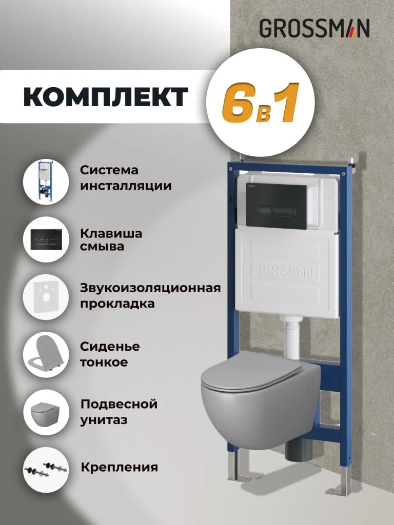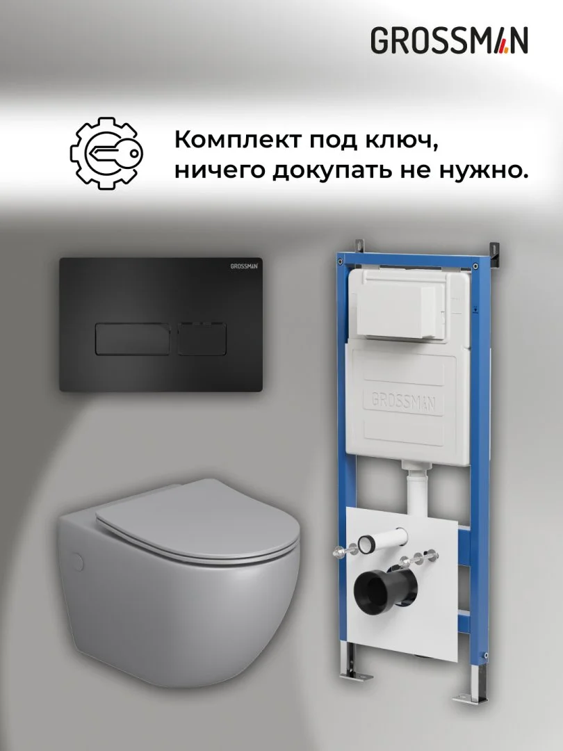 Комплект инсталляции GROSSMAN 900.K31.01.000 с клавишей смыва 700.K31.03.210.210 черный матовый и унитазом GROSSMAN GR-4411GLMS арт.97.4411GLMS.03.210