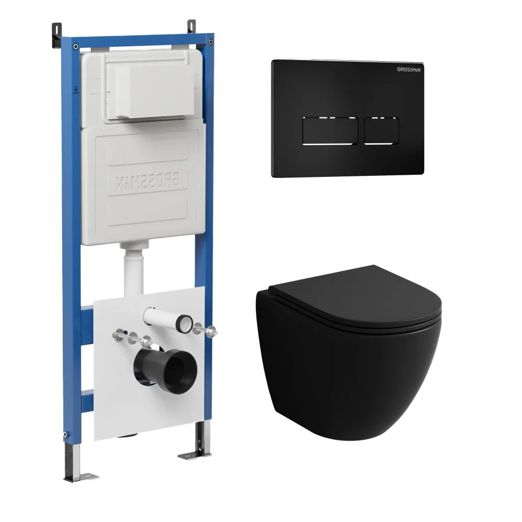 Комплект инсталляции GROSSMAN 900.K31.01.000 с клавишей смыва 700.K31.03.210.210 черный матовый и унитазом GROSSMAN GR-4455BMS арт.97.4455BMS.03.210