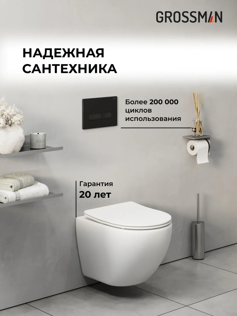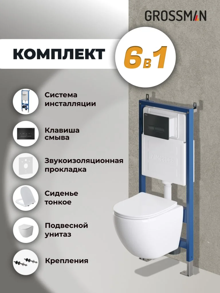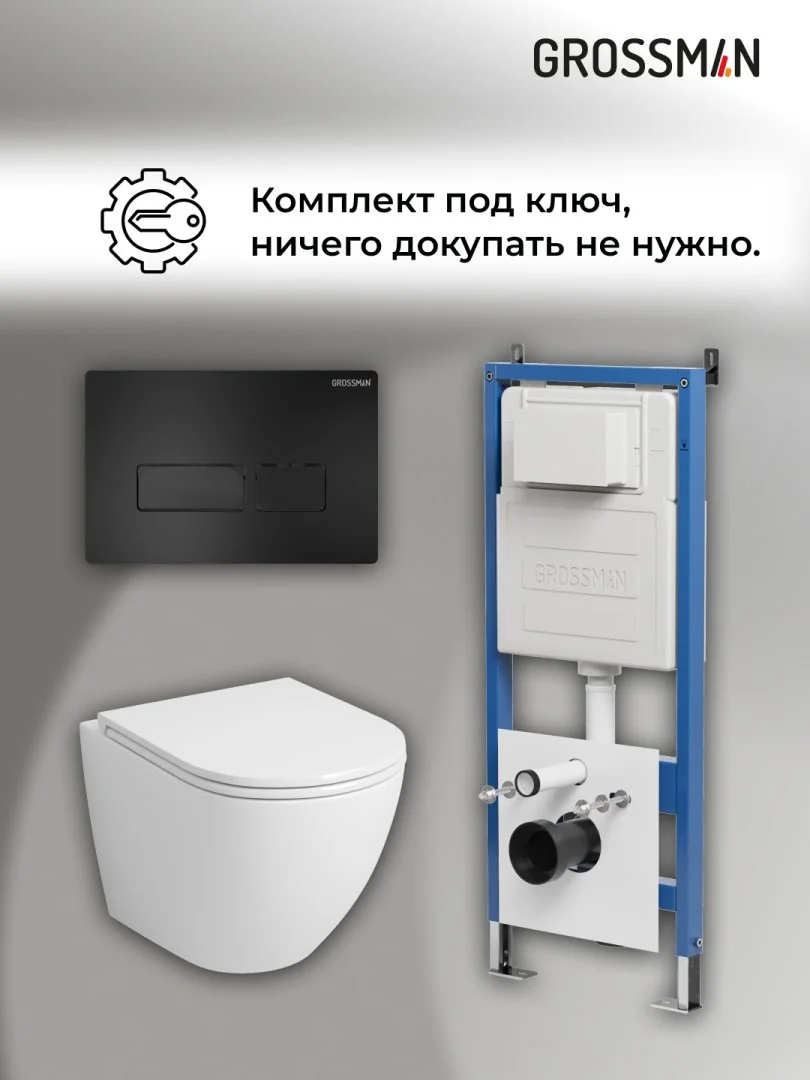 Комплект инсталляции GROSSMAN 900.K31.01.000 с клавишей смыва 700.K31.03.210.210 черный матовый и унитазом GROSSMAN GR-4455SQ арт.97.4455SQ.03.210