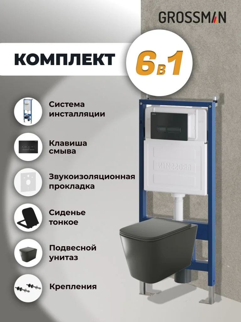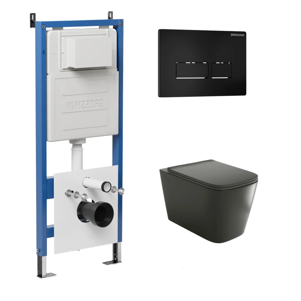 Комплект инсталляции GROSSMAN 900.K31.01.000 с клавишей смыва 700.K31.03.210.210 черный матовый и унитазом GROSSMAN GR-4441BMS арт.97.4441BMS.03.210