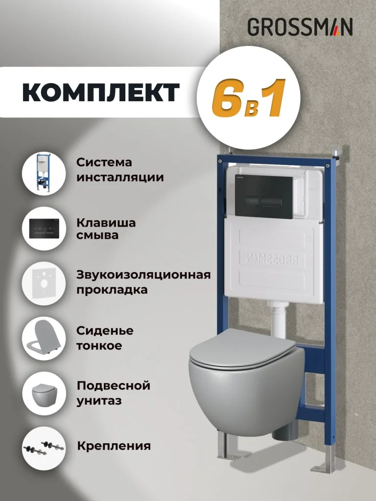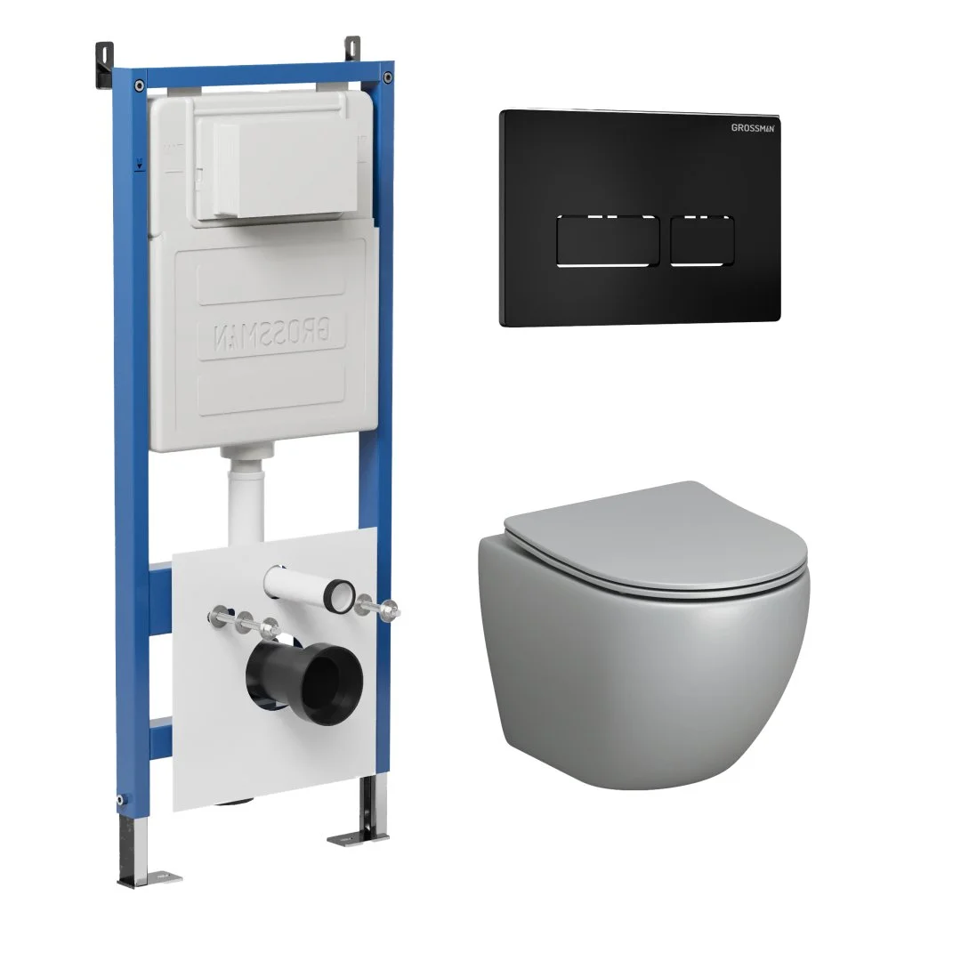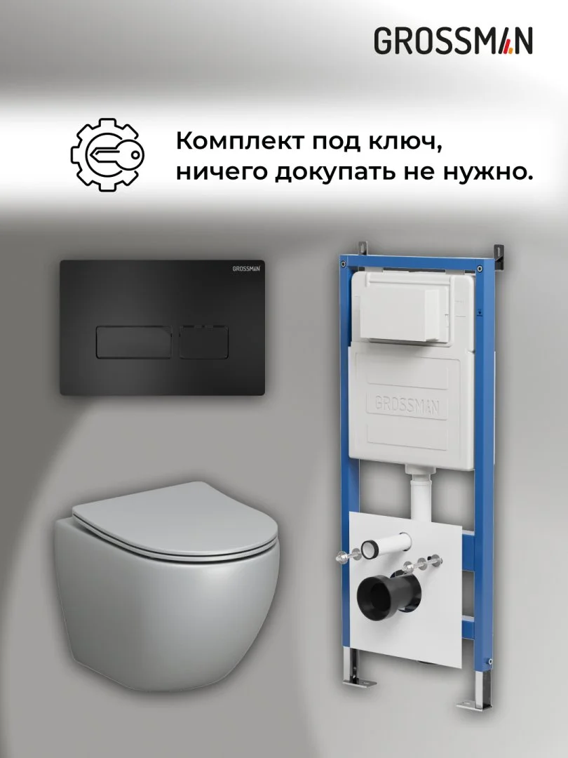 Комплект инсталляции GROSSMAN 900.K31.01.000 с клавишей смыва 700.K31.03.210.210 черный матовый и унитазом GROSSMAN GR-4455GLMS арт.97.4455GLMS.03.210