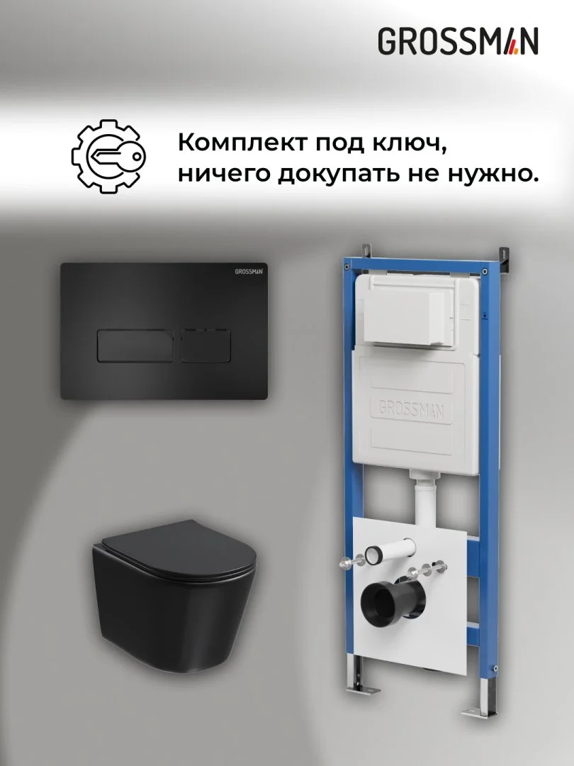 Комплект инсталляции GROSSMAN 900.K31.01.000 с клавишей смыва 700.K31.03.210.210 черный матовый и унитазом GROSSMAN GR-4477BMSQ арт.97.4477BMSQ.03.210