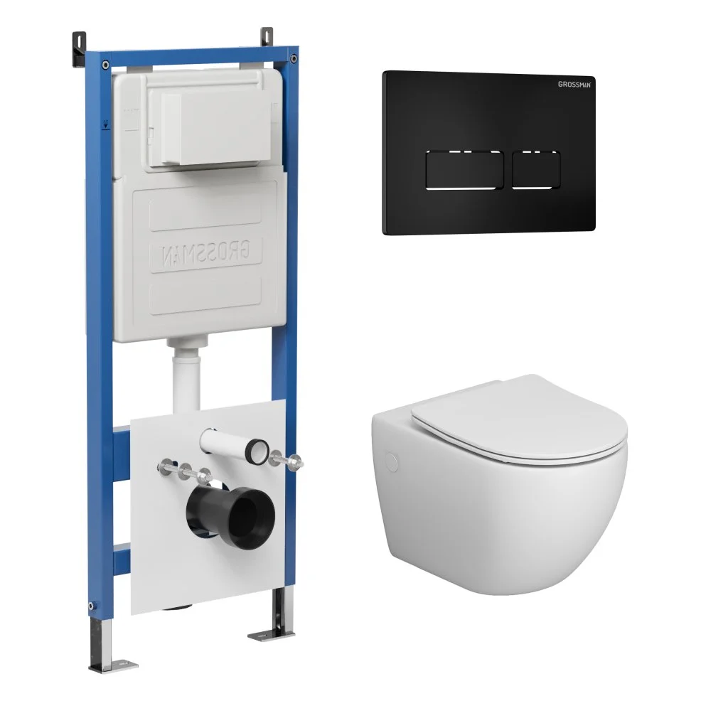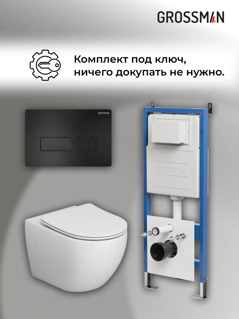 Комплект инсталляции GROSSMAN 900.K31.01.000 с клавишей смыва 700.K31.03.210.210 черный матовый и унитазом GROSSMAN GR-4411SQ арт.97.4411SQ.03.210