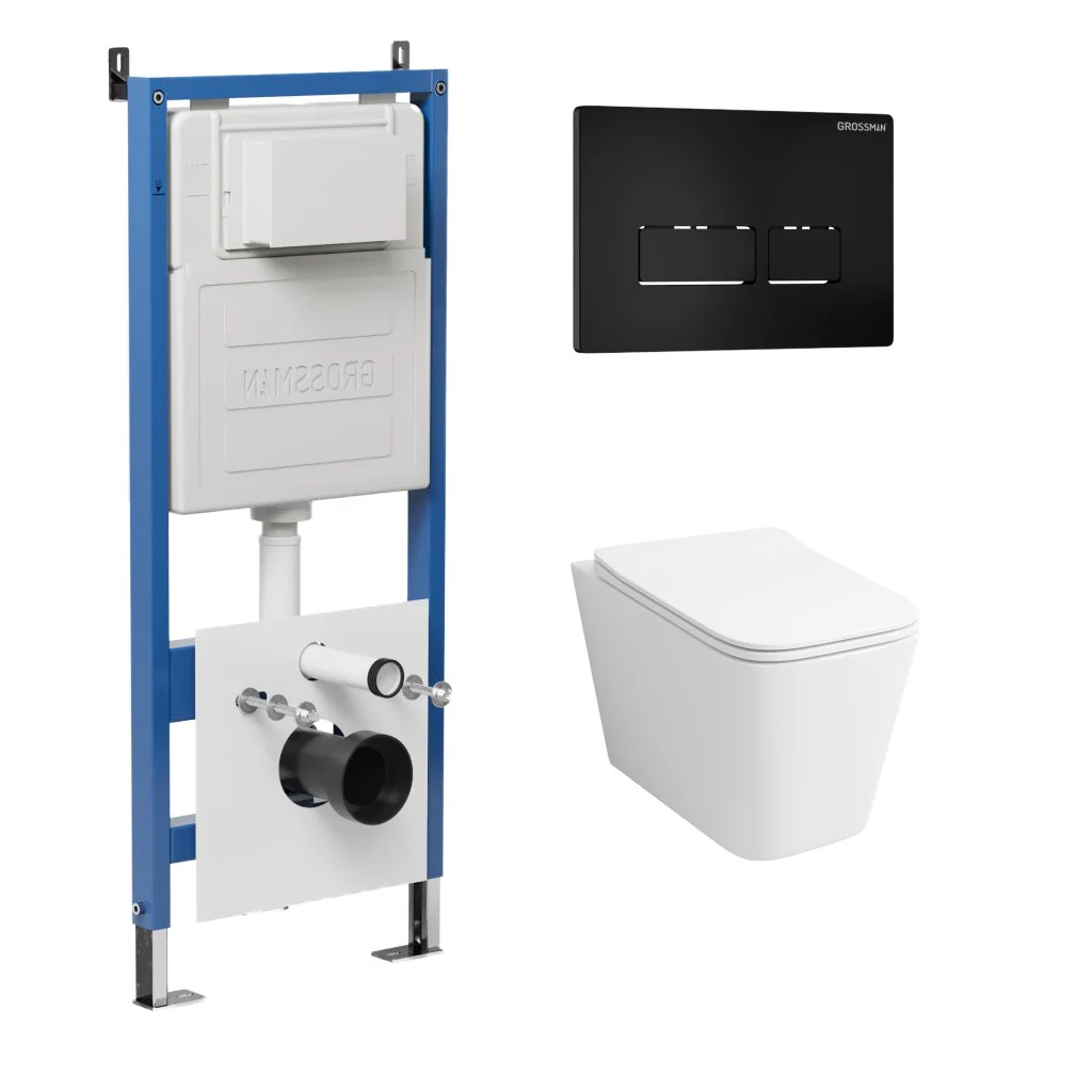 Комплект инсталляции GROSSMAN 900.K31.01.000 с клавишей смыва 700.K31.03.210.210 черный матовый и унитазом GROSSMAN GR-4441S арт.97.4441S.03.210