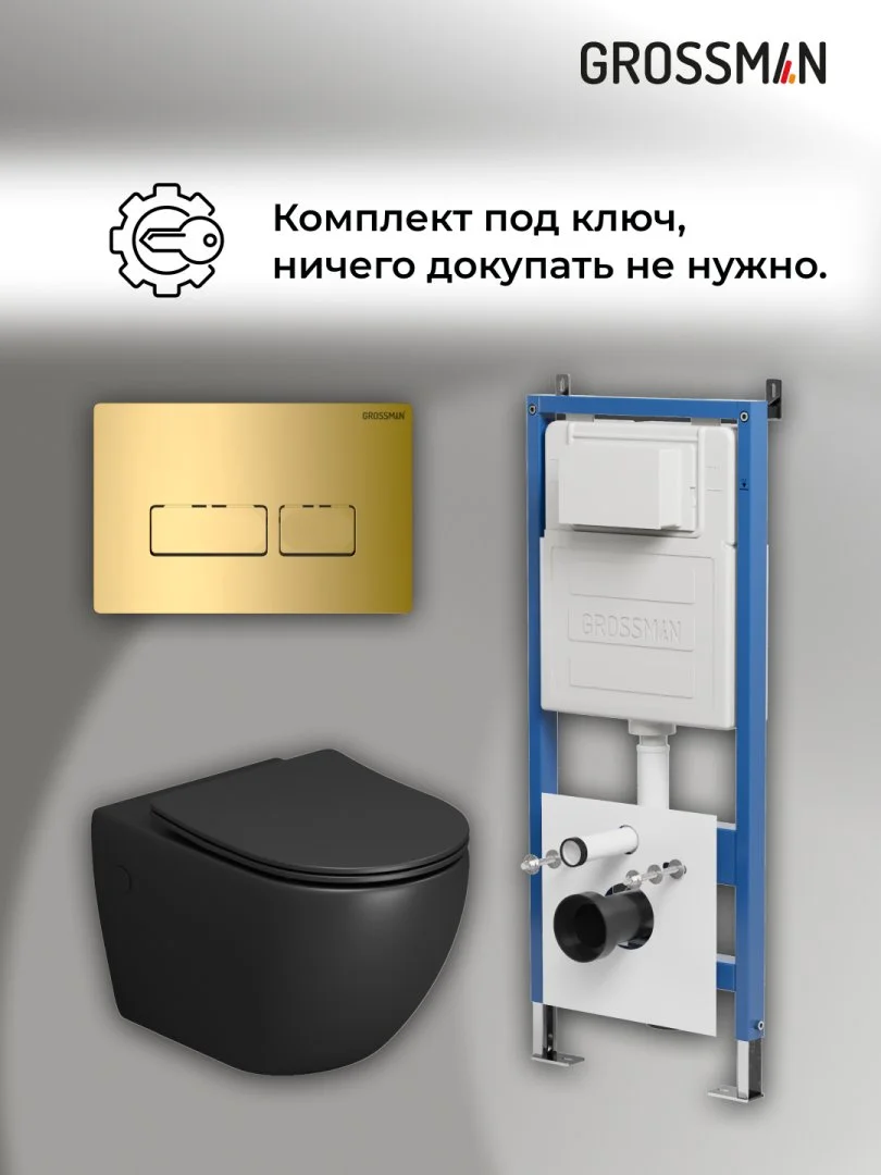 Комплект инсталляции GROSSMAN 900.K31.01.000 с клавишей смыва 700.K31.03.300.300 золото и унитазом GROSSMAN GR-4411BMS арт.97.4411BMS.03.300