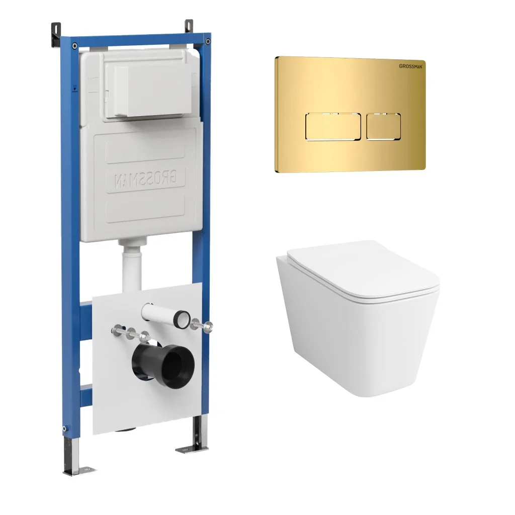 Комплект инсталляции GROSSMAN 900.K31.01.000 с клавишей смыва 700.K31.03.300.300 золото и унитазом GROSSMAN GR-4441S арт.97.4441S.03.300