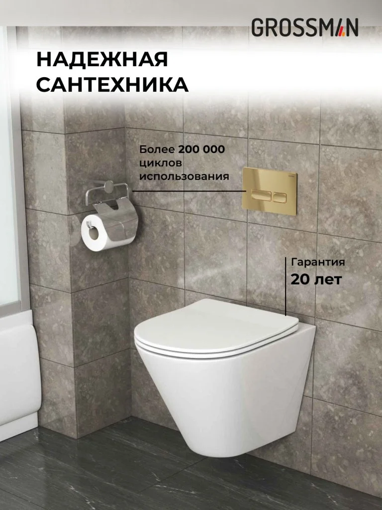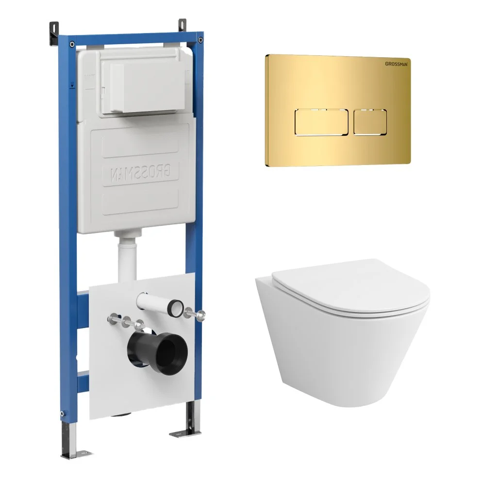 Комплект инсталляции GROSSMAN 900.K31.01.000 с клавишей смыва 700.K31.03.300.300 золото и унитазом GROSSMAN GR-4477S арт.97.4477S.03.300
