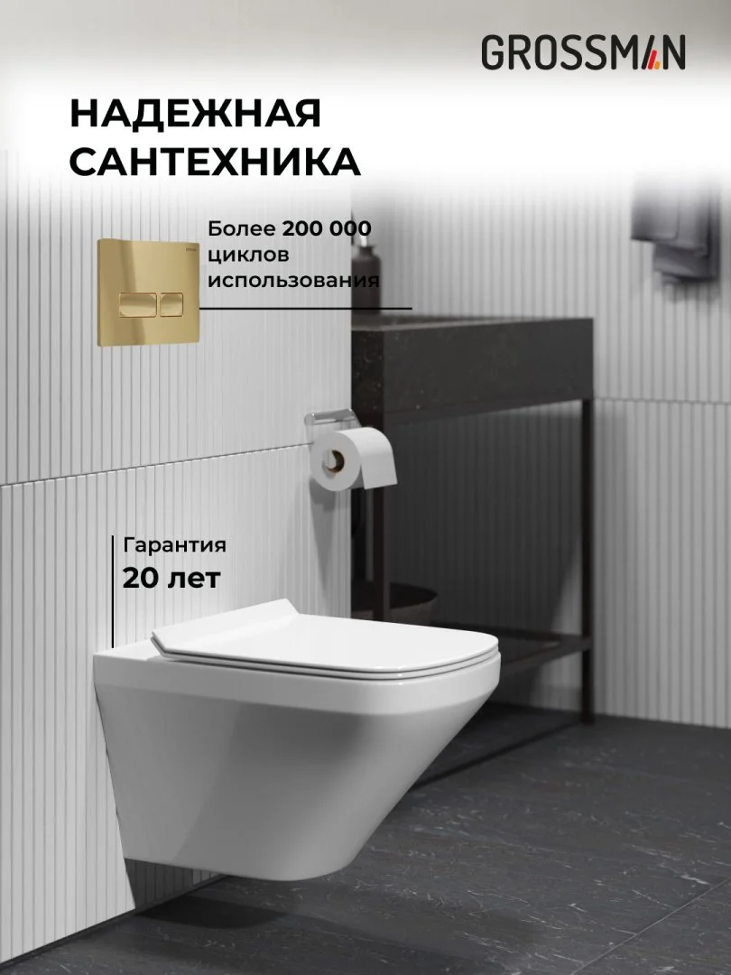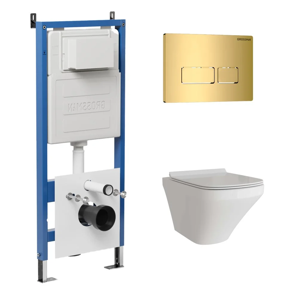Комплект инсталляции GROSSMAN 900.K31.01.000 с клавишей смыва 700.K31.03.300.300 золото и унитазом GROSSMAN GR-4440S арт.97.4440S.03.300