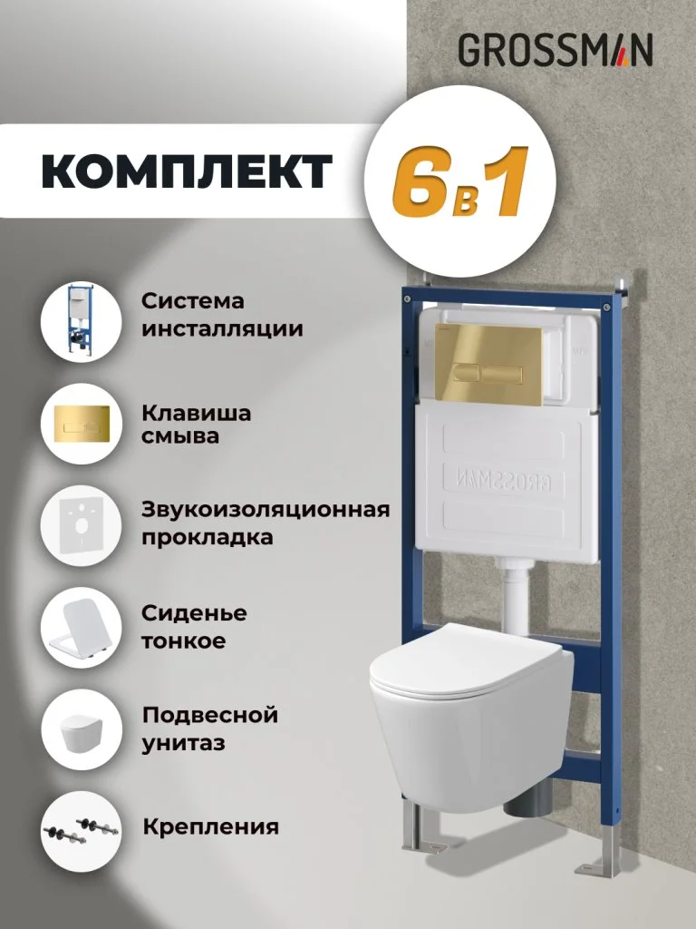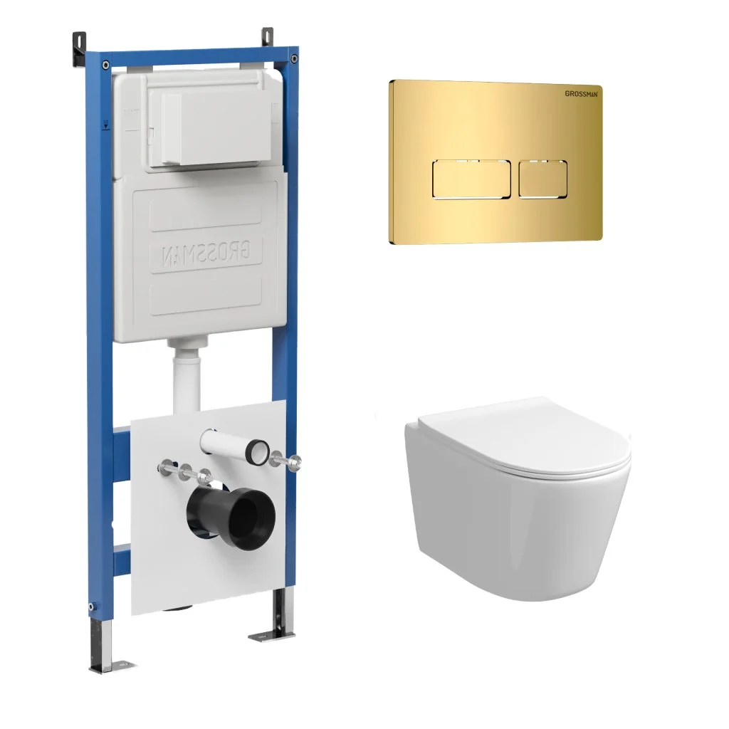 Комплект инсталляции GROSSMAN 900.K31.01.000 с клавишей смыва 700.K31.03.300.300 золото и унитазом GROSSMAN GR-4477SQ арт.97.4477SQ.03.300