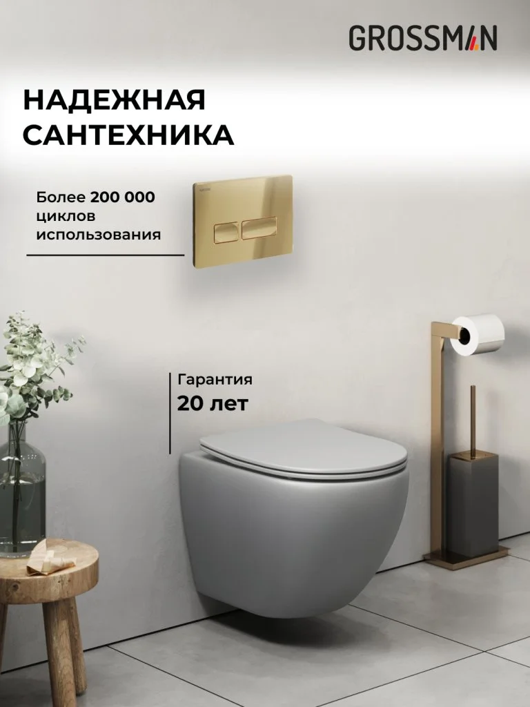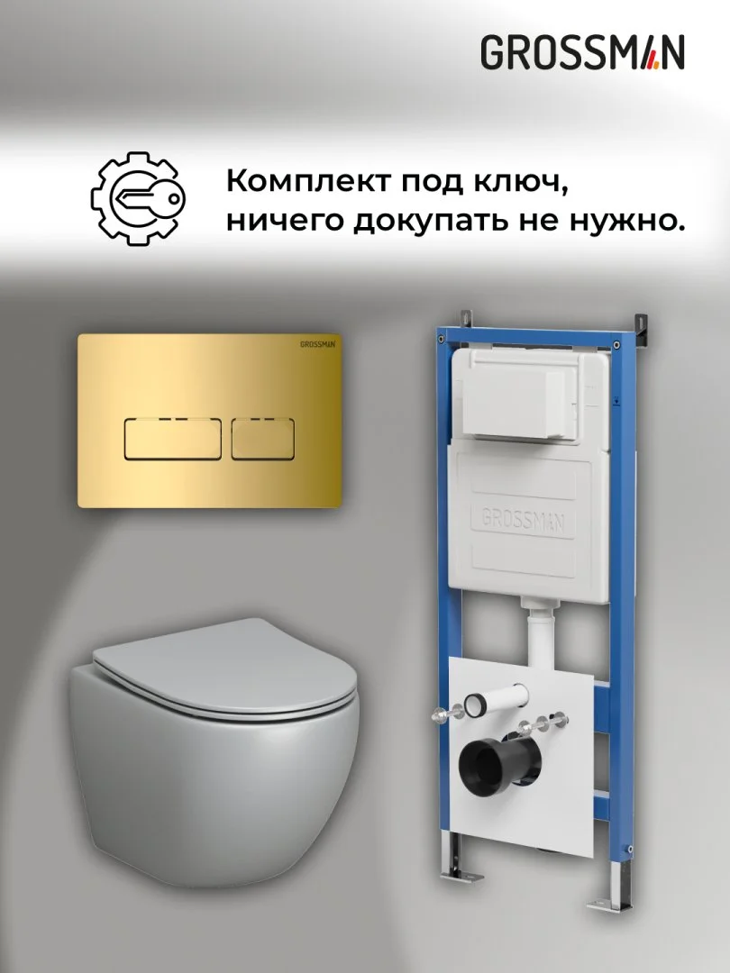 Комплект инсталляции GROSSMAN 900.K31.01.000 с клавишей смыва 700.K31.03.300.300 золото и унитазом GROSSMAN GR-4455GLMS арт.97.4455GLMS.03.300