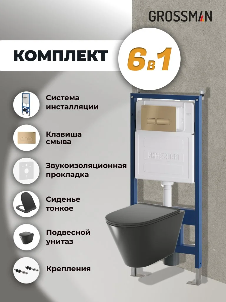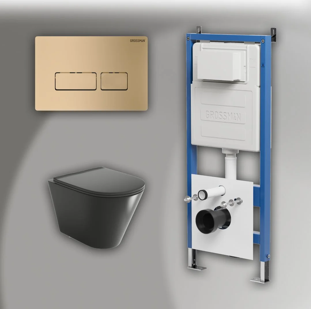 Комплект инсталляции GROSSMAN 900.K31.01.000 с клавишей смыва 700.K31.03.310.310 золото матовое и унитазом GROSSMAN GR-4477BMS арт.97.4477BMS.03.310