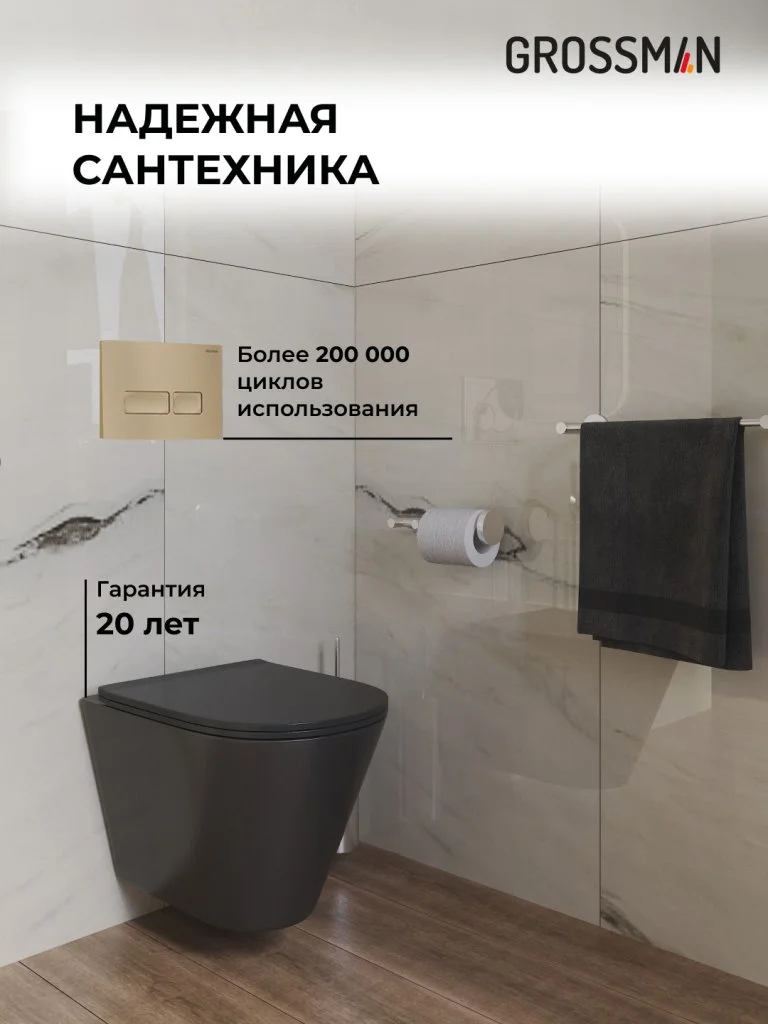 Комплект инсталляции GROSSMAN 900.K31.01.000 с клавишей смыва 700.K31.03.310.310 золото матовое и унитазом GROSSMAN GR-4477BMS арт.97.4477BMS.03.310