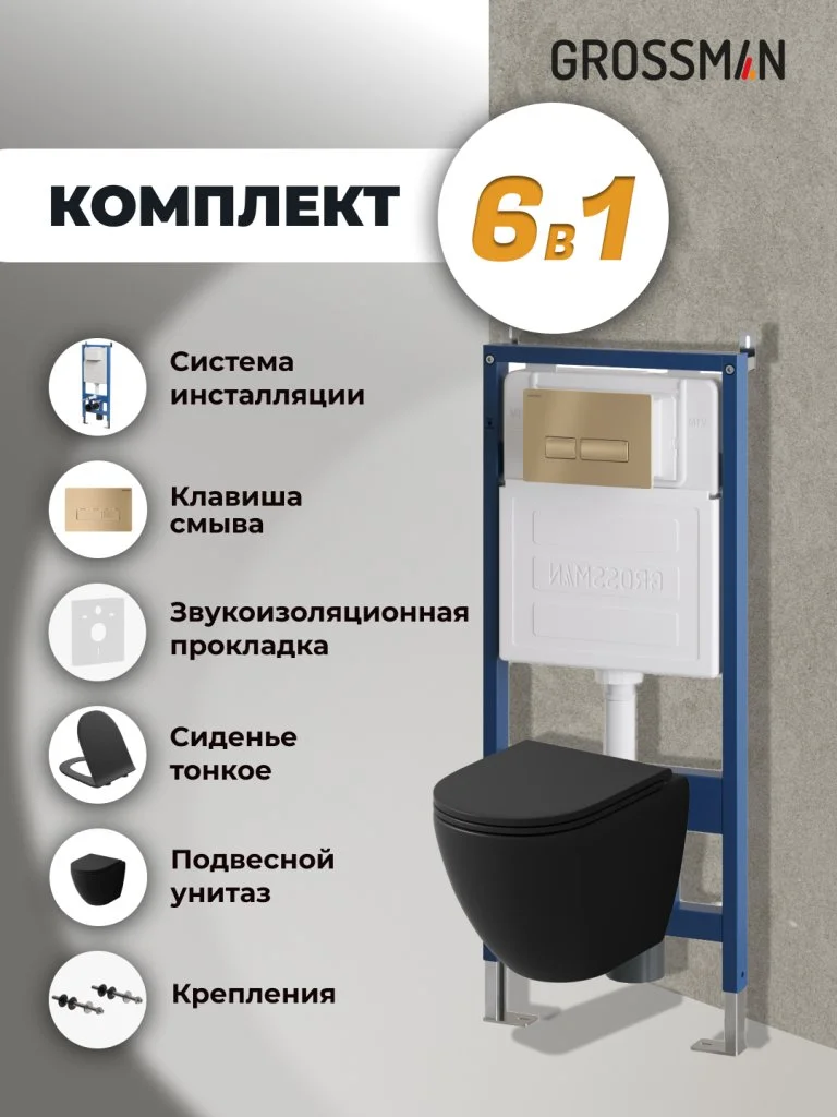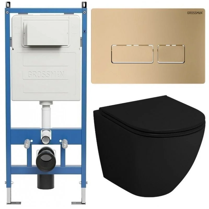 Комплект инсталляции GROSSMAN 900.K31.01.000 с клавишей смыва 700.K31.03.310.310 золото матовое и унитазом GROSSMAN GR-4455BMSQ арт.97.4455BMSQ.03.310