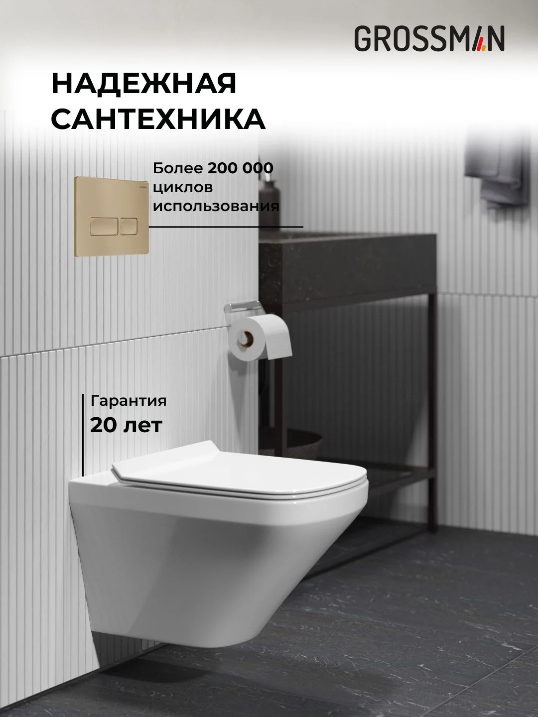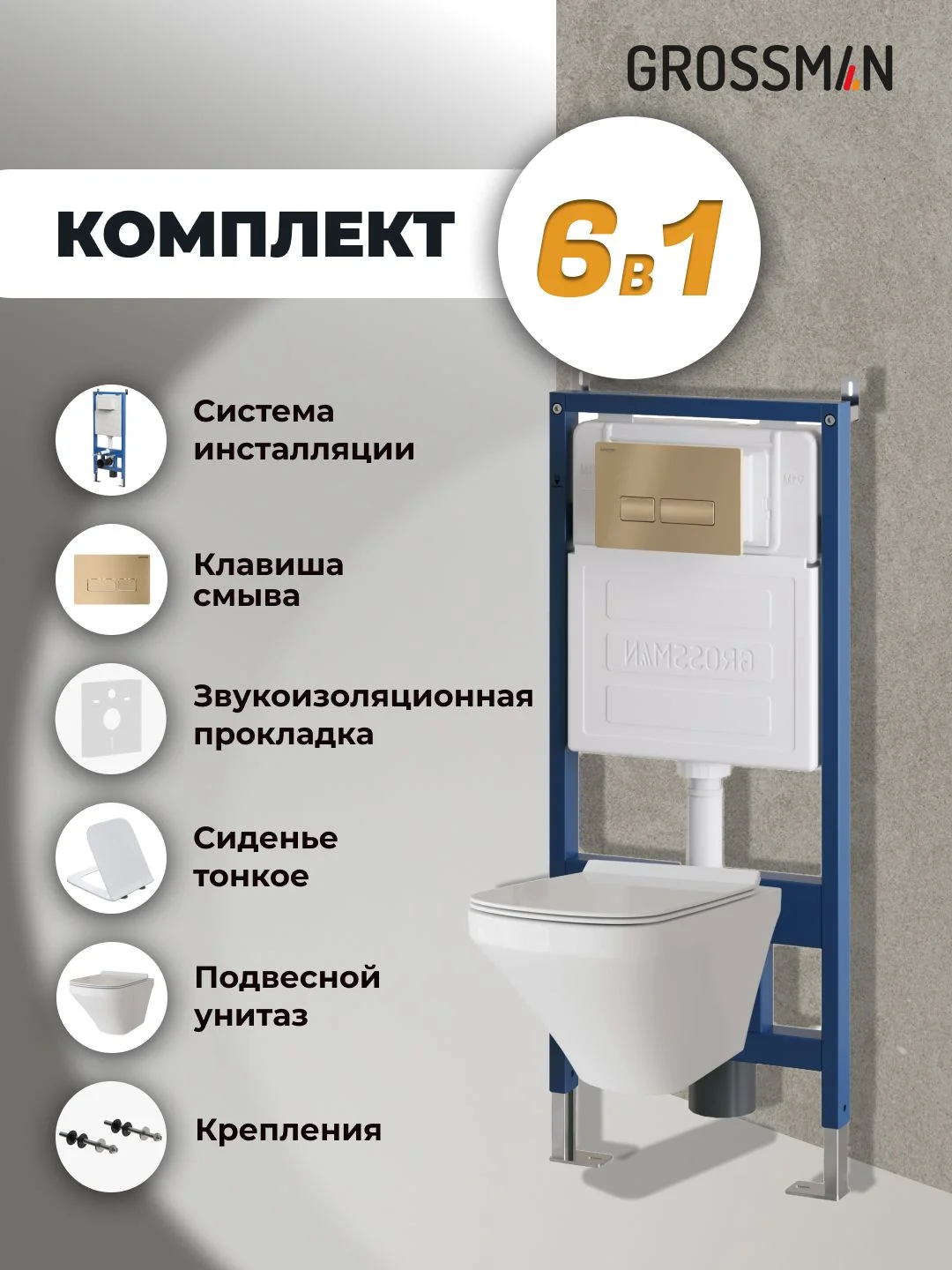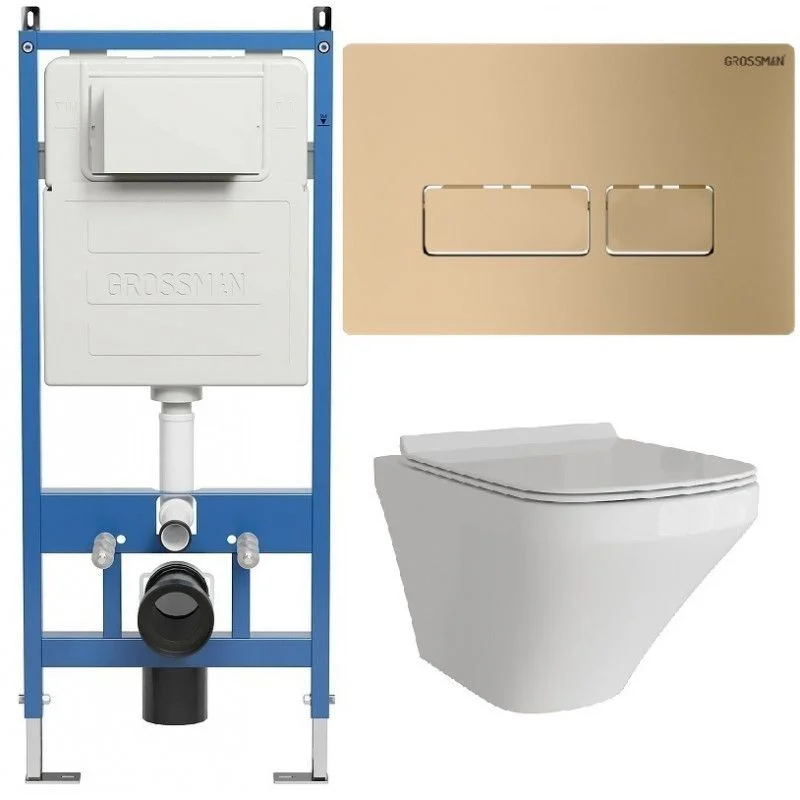 Комплект инсталляции GROSSMAN 900.K31.01.000 с клавишей смыва 700.K31.03.310.310 золото матовое и унитазом GROSSMAN GR-4440S арт.97.4440S.03.310