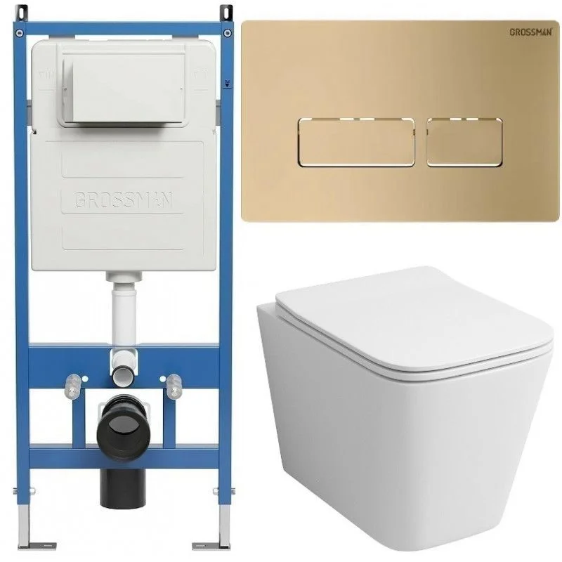 Комплект инсталляции GROSSMAN 900.K31.01.000 с клавишей смыва 700.K31.03.310.310 золото матовое и унитазом GROSSMAN GR-4441S арт.97.4441S.03.310