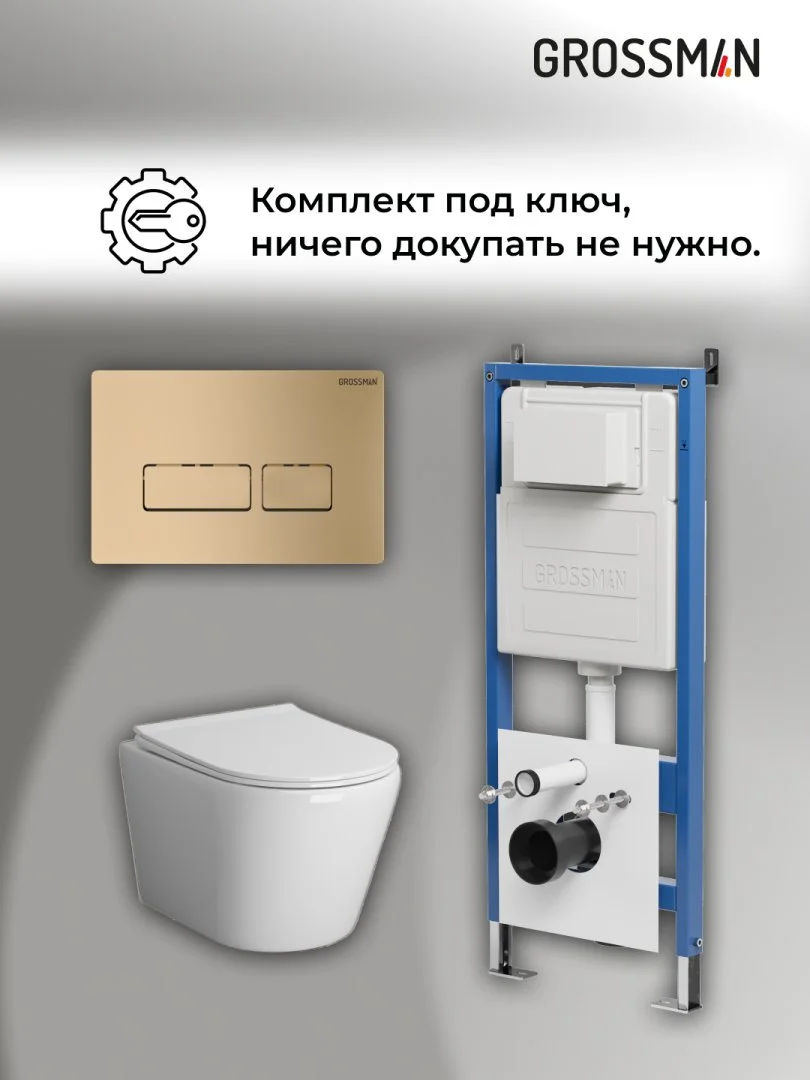 Комплект инсталляции GROSSMAN 900.K31.01.000 с клавишей смыва 700.K31.03.310.310 золото матовое и унитазом GROSSMAN GR-4478SQ арт.97.4478SQ.03.310