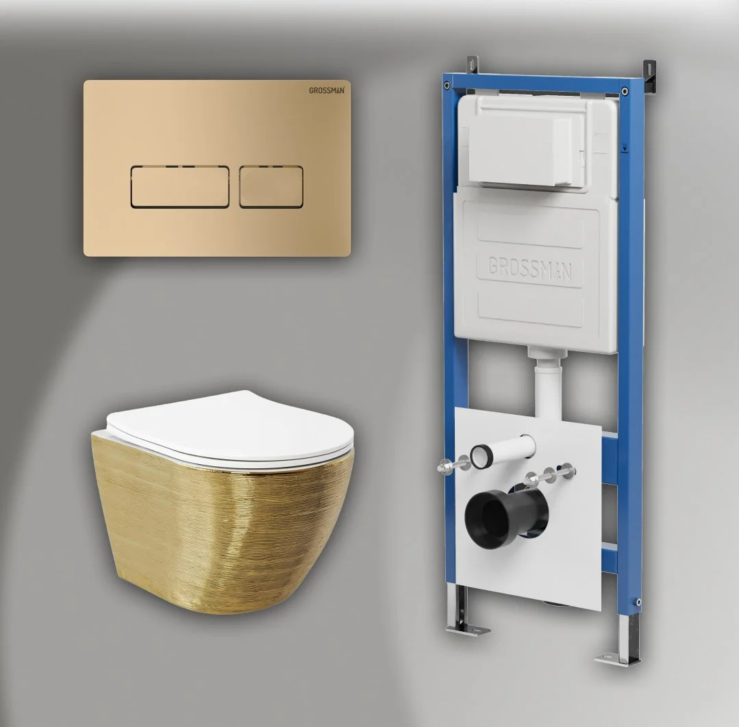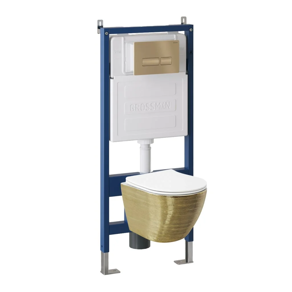 Комплект инсталляции GROSSMAN 900.K31.01.000 с клавишей смыва 700.K31.03.310.310 золото матовое и унитазом GROSSMAN GR-4455GWS арт.97.4455GWS.03.310