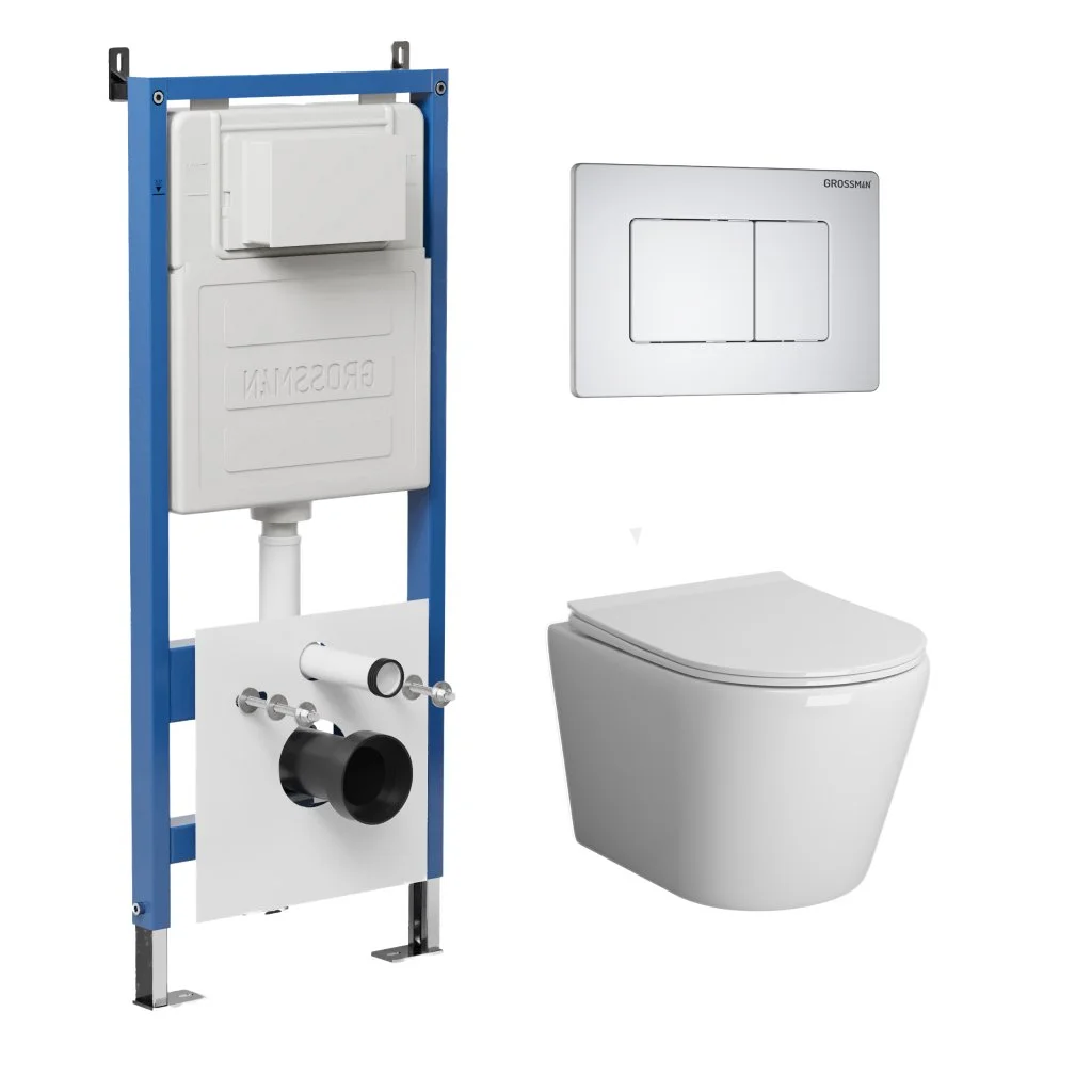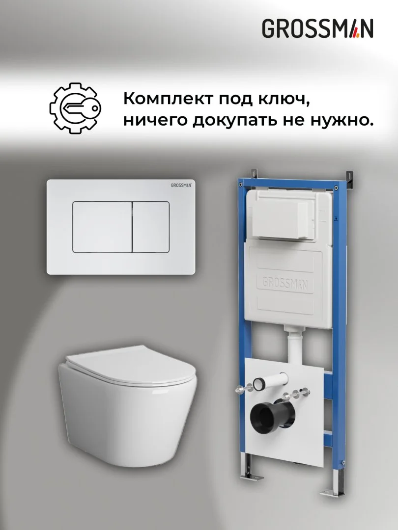 Комплект инсталляции GROSSMAN 900.K31.01.000 с клавишей смыва 700.K31.04.01M.01M белый матовый и унитазом GROSSMAN GR-4478S арт.97.4478S.04.01M