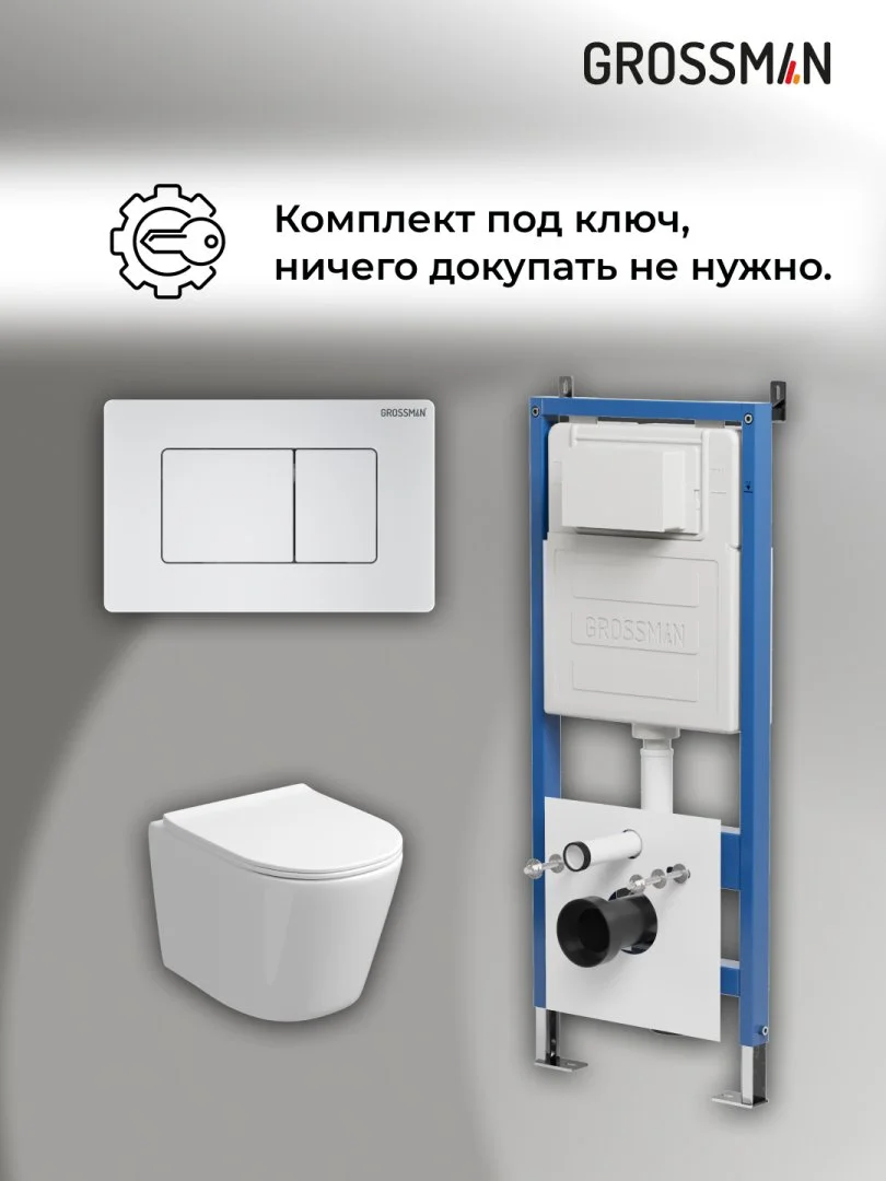 Комплект инсталляции GROSSMAN 900.K31.01.000 с клавишей смыва 700.K31.04.01M.01M белый матовый и унитазом GROSSMAN GR-4477SQ арт.97.4477SQ.04.01M
