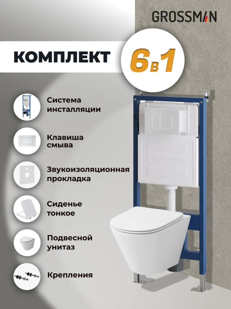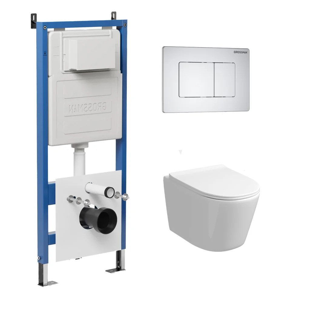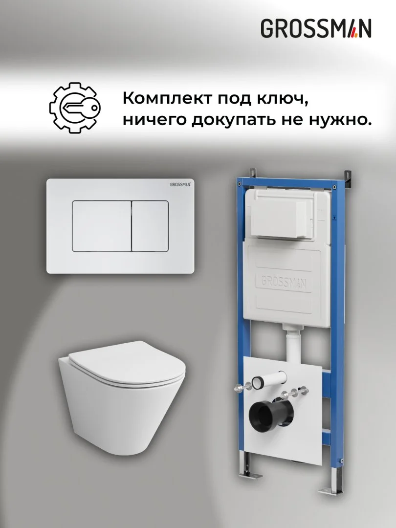 Комплект инсталляции GROSSMAN 900.K31.01.000 с клавишей смыва 700.K31.04.01M.01M белый матовый и унитазом GROSSMAN GR-4477S арт.97.4477S.04.01M
