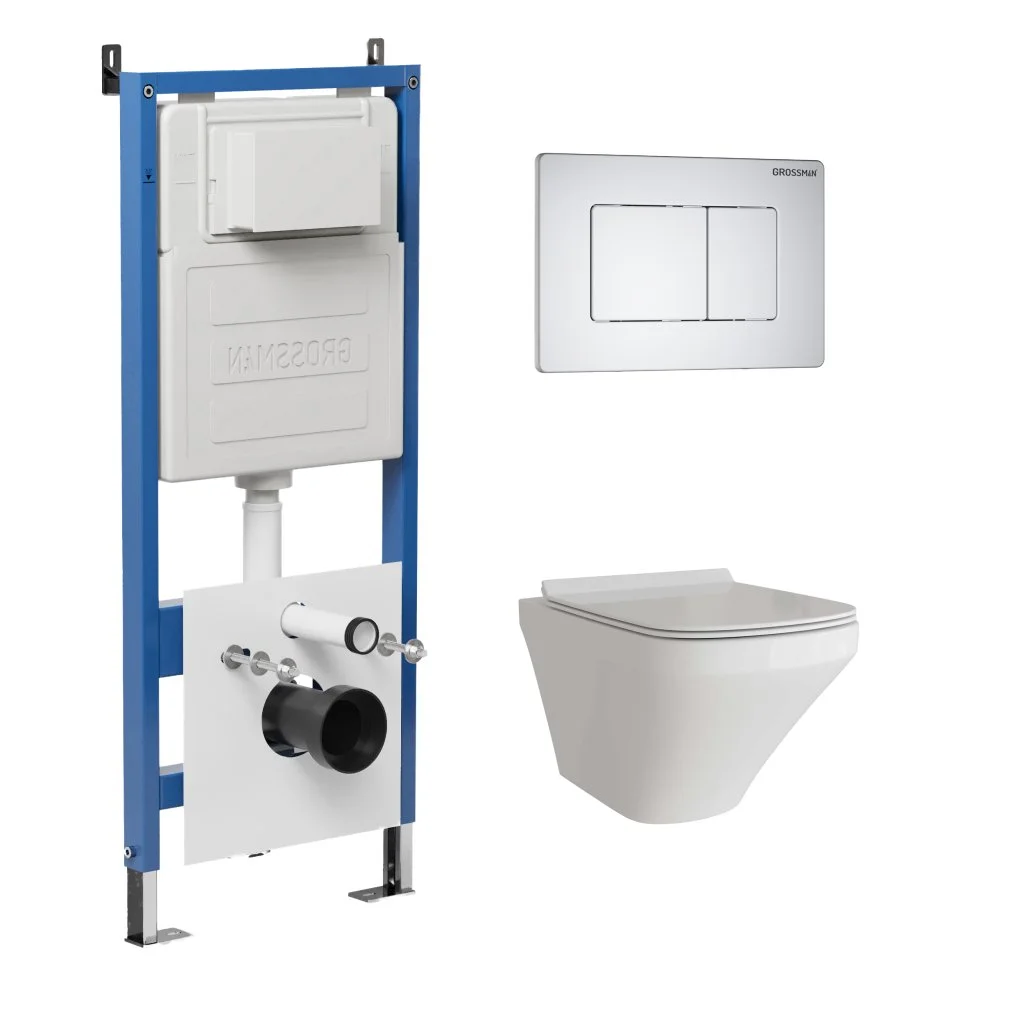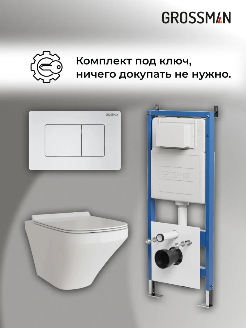 Комплект инсталляции GROSSMAN 900.K31.01.000 с клавишей смыва 700.K31.04.01M.01M белый матовый и унитазом GROSSMAN GR-4440S арт.97.4440S.04.01M