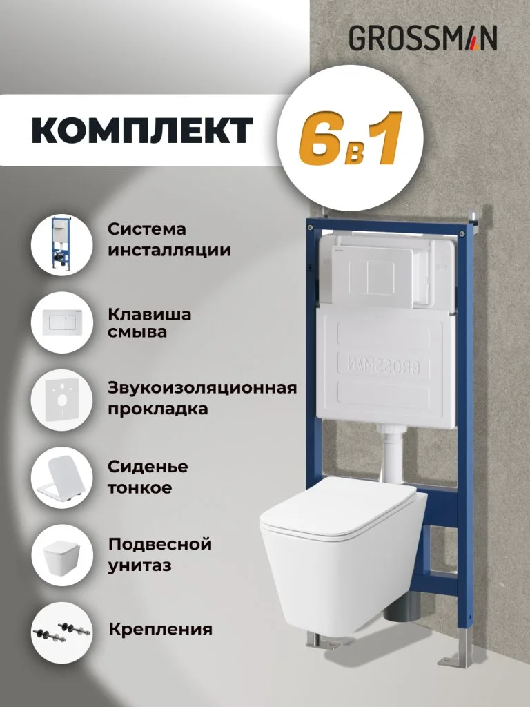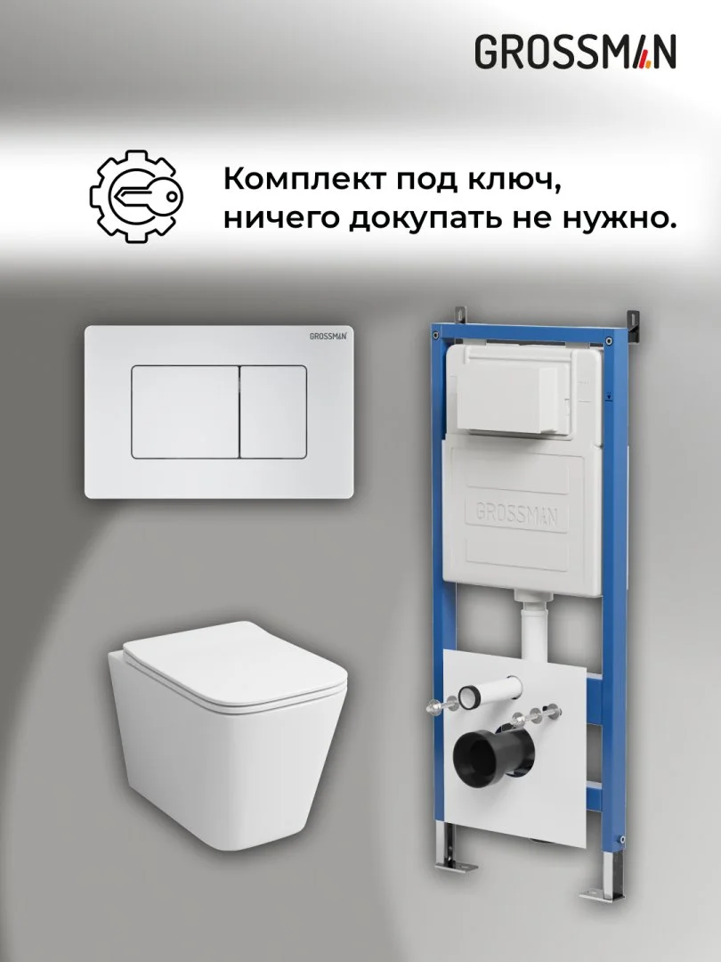 Комплект инсталляции GROSSMAN 900.K31.01.000 с клавишей смыва 700.K31.04.01M.01M белый матовый и унитазом GROSSMAN GR-4441S арт.97.4441S.04.01M