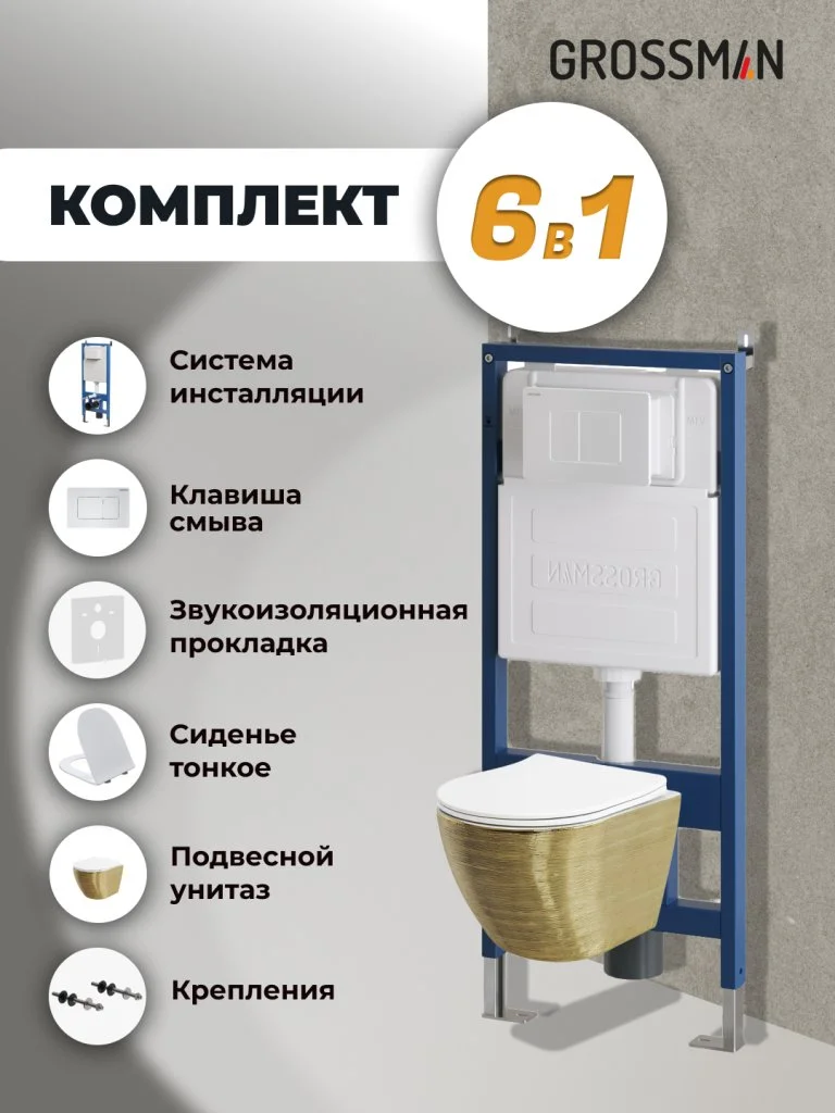 Комплект инсталляции GROSSMAN 900.K31.01.000 с клавишей смыва 700.K31.04.01M.01M белый матовый и унитазом GROSSMAN GR-4455GWS арт.97.4455GWS.04.01M