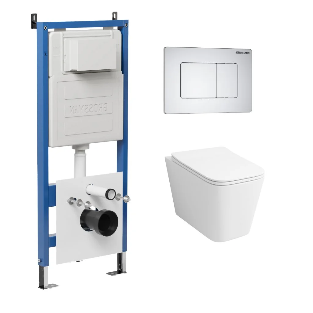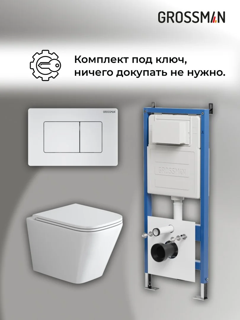 Комплект инсталляции GROSSMAN 900.K31.01.000 с клавишей смыва 700.K31.04.01M.01M белый матовый и унитазом GROSSMAN GR-4479SQ арт.97.4479SQ.04.01M