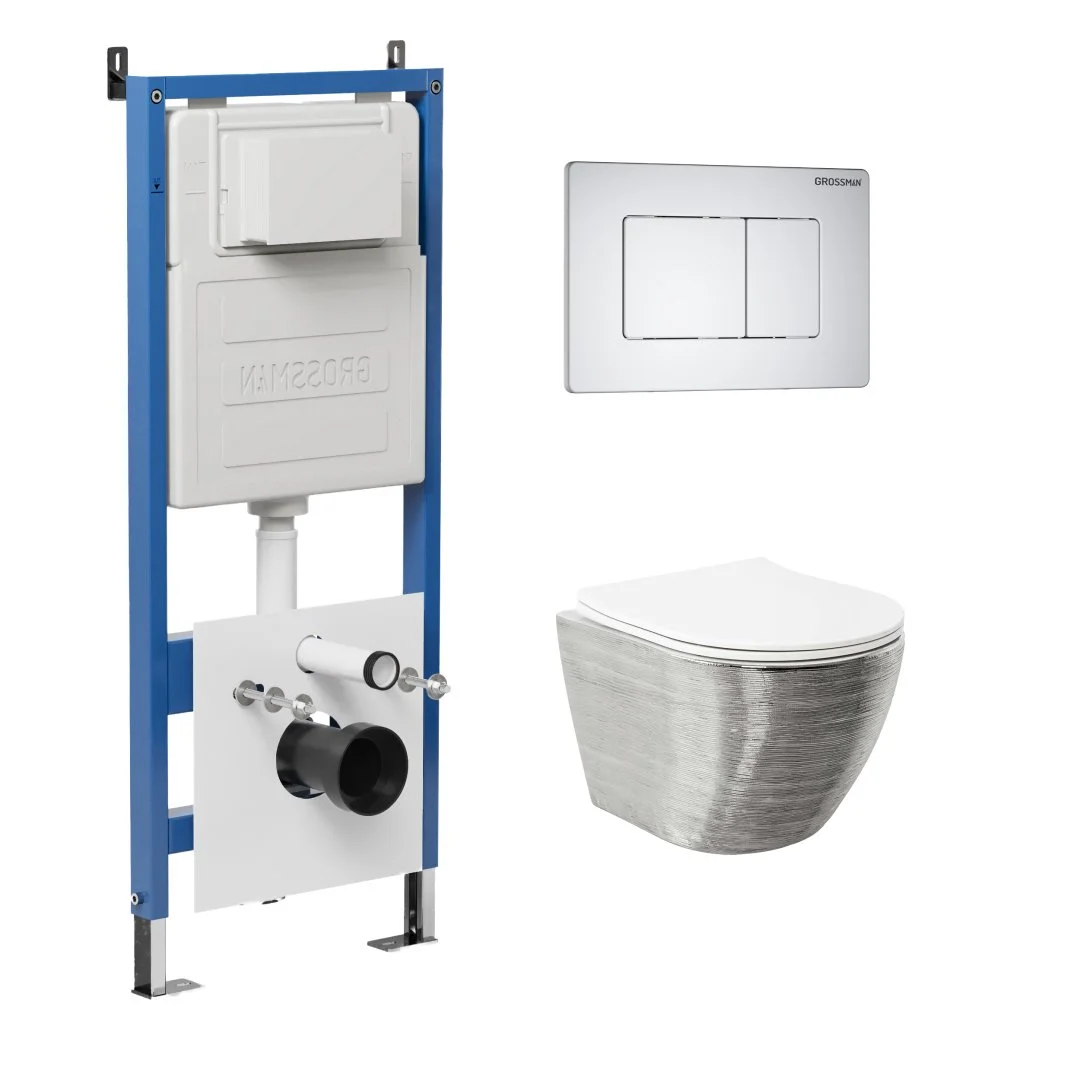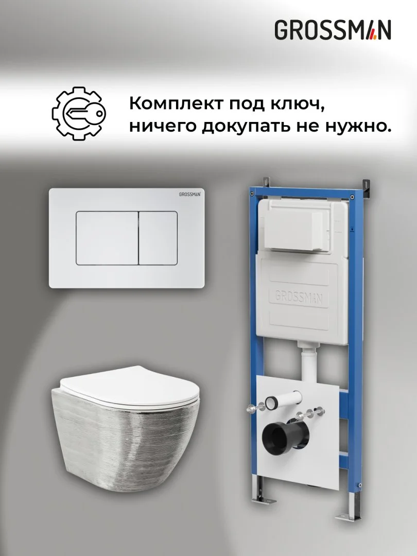 Комплект инсталляции GROSSMAN 900.K31.01.000 с клавишей смыва 700.K31.04.01M.01M белый матовый и унитазом GROSSMAN GR-4455SWS арт.97.4455SWS.04.01M