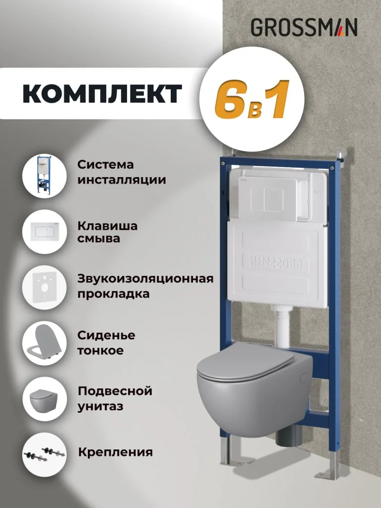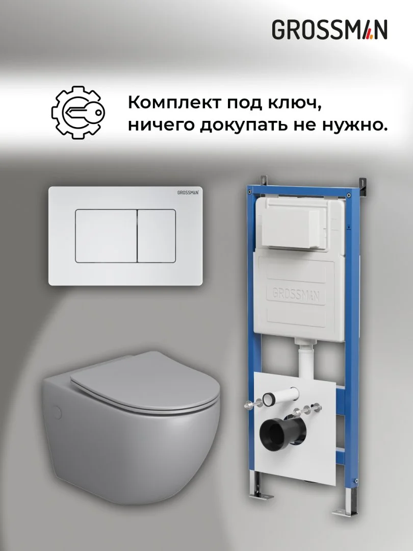 Комплект инсталляции GROSSMAN 900.K31.01.000 с клавишей смыва 700.K31.04.01M.01M белый матовый и унитазом GROSSMAN GR-4411GLMS арт.97.4411GLMS.04.01M