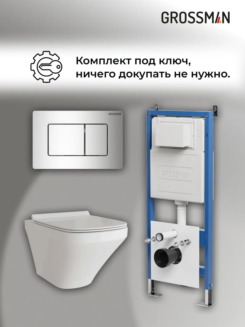 Комплект инсталляции GROSSMAN 900.K31.01.000 с клавишей смыва 700.K31.04.10M.10M хром и унитазом GROSSMAN GR-4440S арт.97.4440S.04.10M