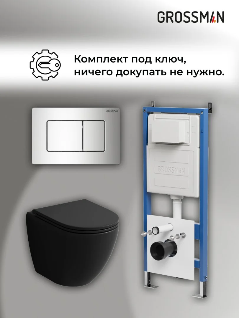 Комплект инсталляции GROSSMAN 900.K31.01.000 с клавишей смыва 700.K31.04.10M.10M хром и унитазом GROSSMAN GR-4455BMS арт.97.4455BMS.04.10M