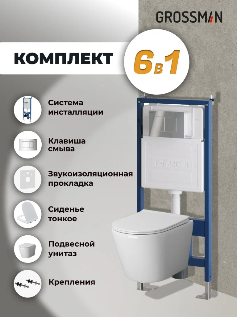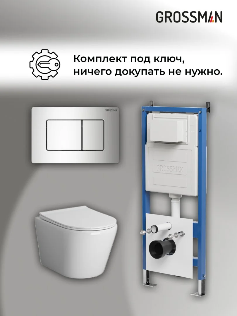 Комплект инсталляции GROSSMAN 900.K31.01.000 с клавишей смыва 700.K31.04.10M.10M хром и унитазом GROSSMAN GR-4478S арт.97.4478S.04.10M