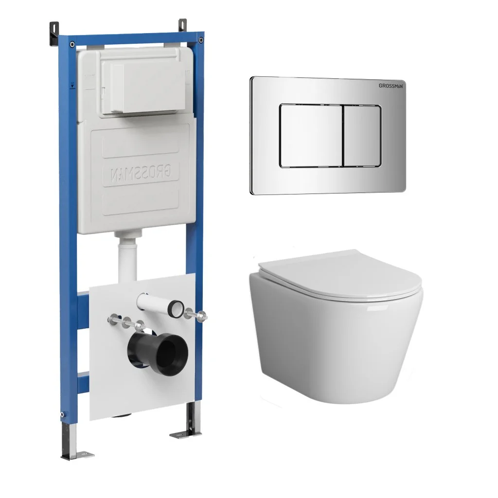 Комплект инсталляции GROSSMAN 900.K31.01.000 с клавишей смыва 700.K31.04.10M.10M хром и унитазом GROSSMAN GR-4478SQ арт.97.4478SQ.04.10M