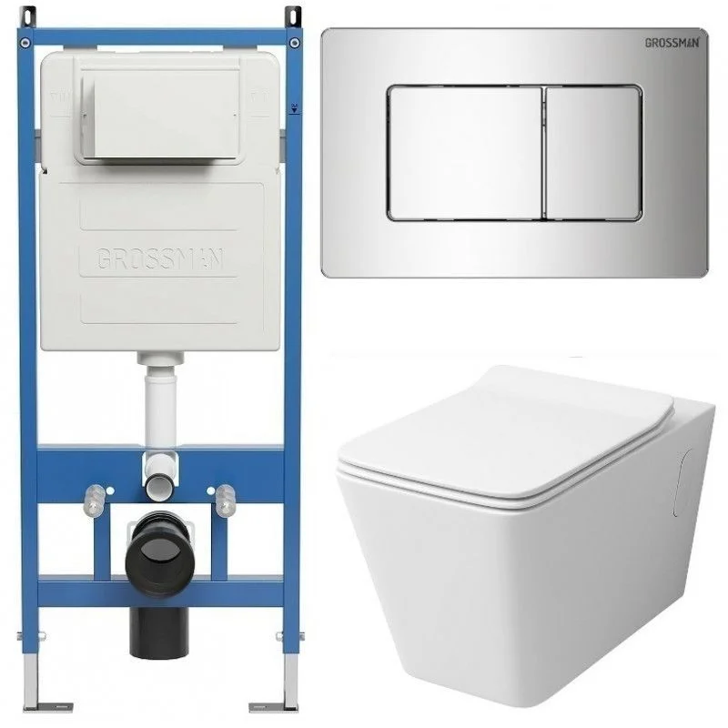 Комплект инсталляции GROSSMAN 900.K31.01.000 с клавишей смыва 700.K31.04.10M.10M хром и унитазом GROSSMAN GR-4414S арт.97.4414S.04.10M