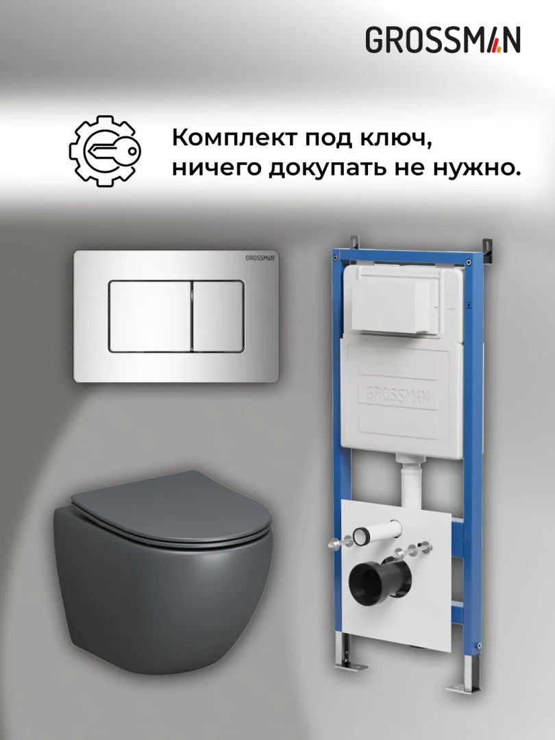 Комплект инсталляции GROSSMAN 900.K31.01.000 с клавишей смыва 700.K31.04.10M.10M хром и унитазом GROSSMAN GR-4455GMS арт.97.4455GMS.04.10M