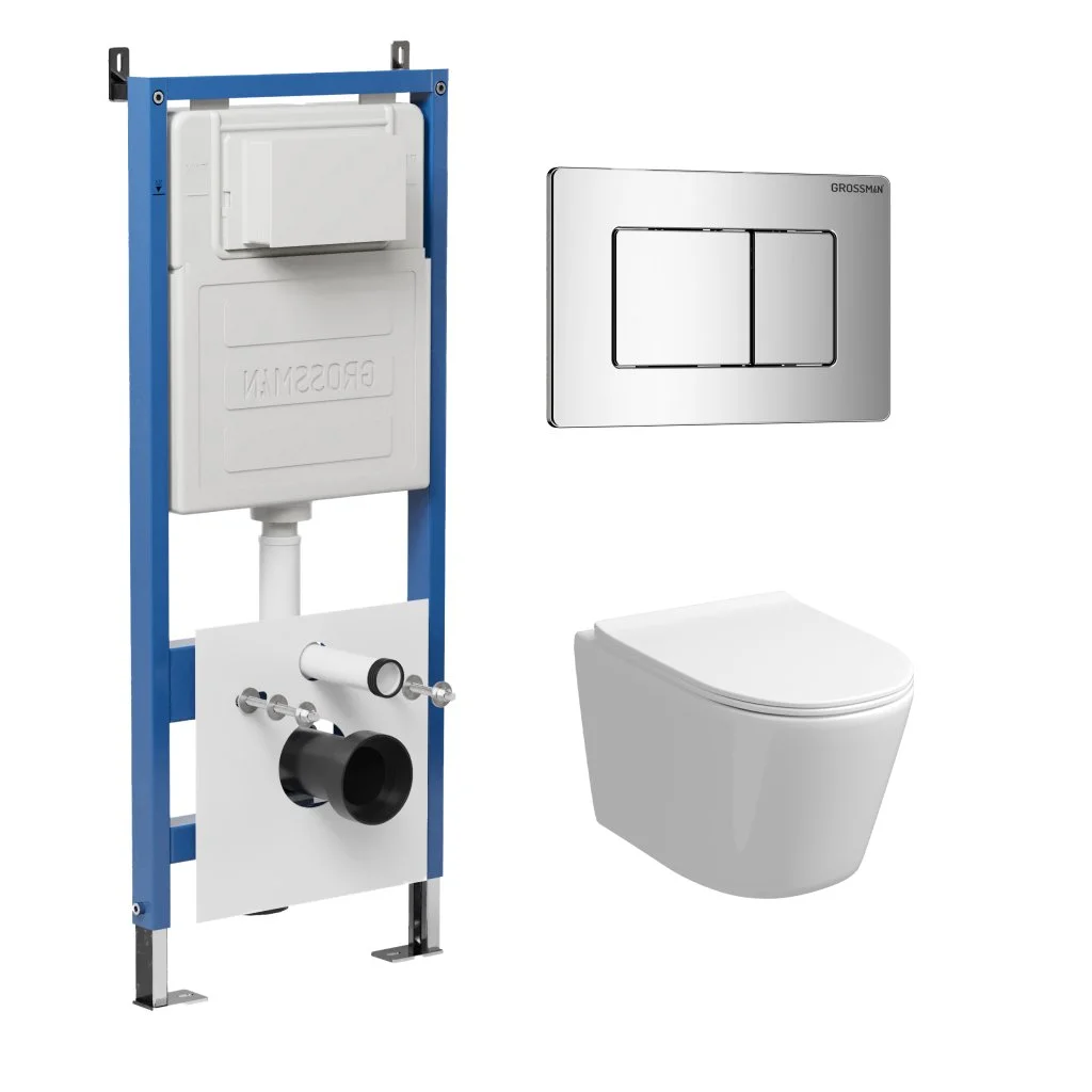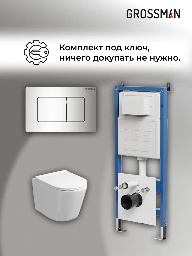 Комплект инсталляции GROSSMAN 900.K31.01.000 с клавишей смыва 700.K31.04.10M.10M хром и унитазом GROSSMAN GR-4477SQ арт.97.4477SQ.04.10M