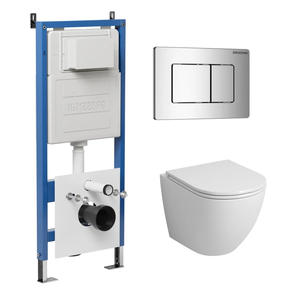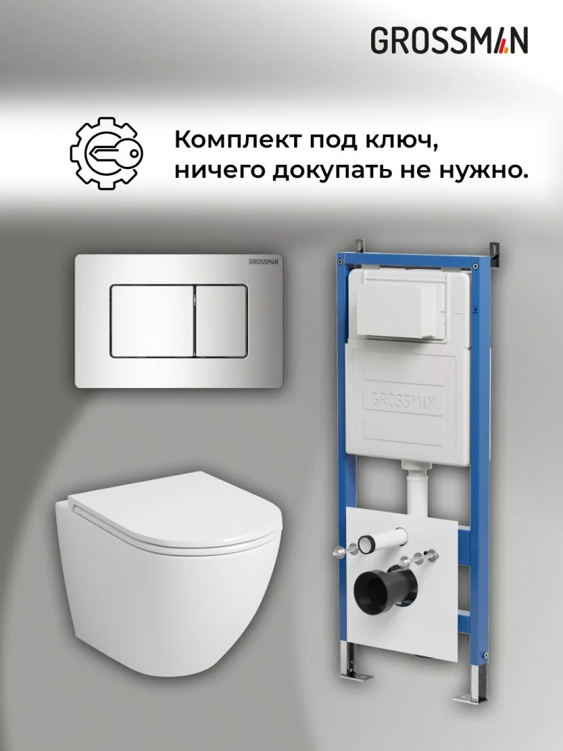 Комплект инсталляции GROSSMAN 900.K31.01.000 с клавишей смыва 700.K31.04.10M.10M хром и унитазом GROSSMAN GR-4455SQ арт.97.4455SQ.04.10M