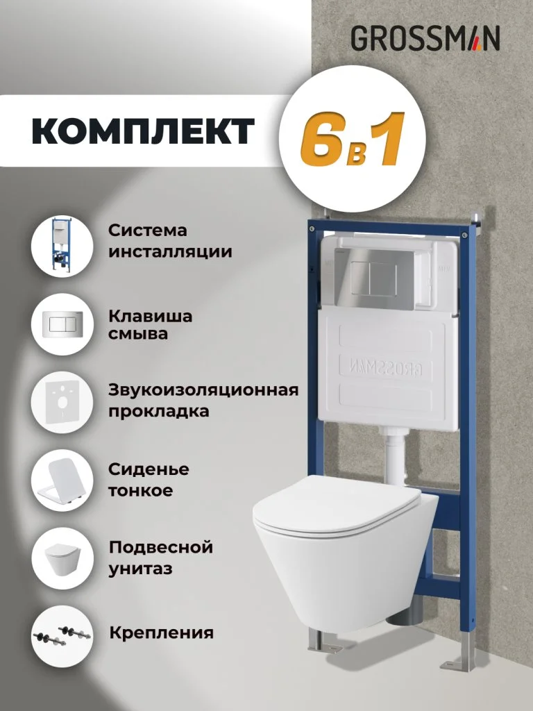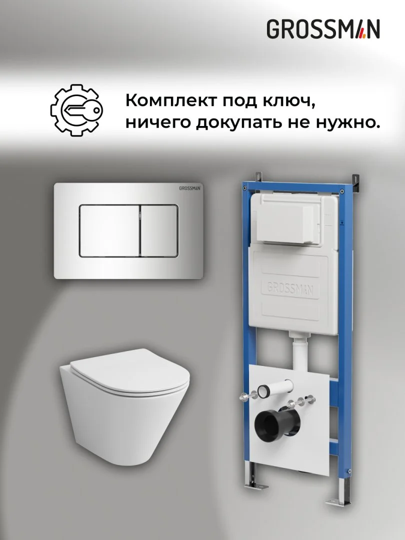 Комплект инсталляции GROSSMAN 900.K31.01.000 с клавишей смыва 700.K31.04.10M.10M хром и унитазом GROSSMAN GR-4477S арт.97.4477S.04.10M